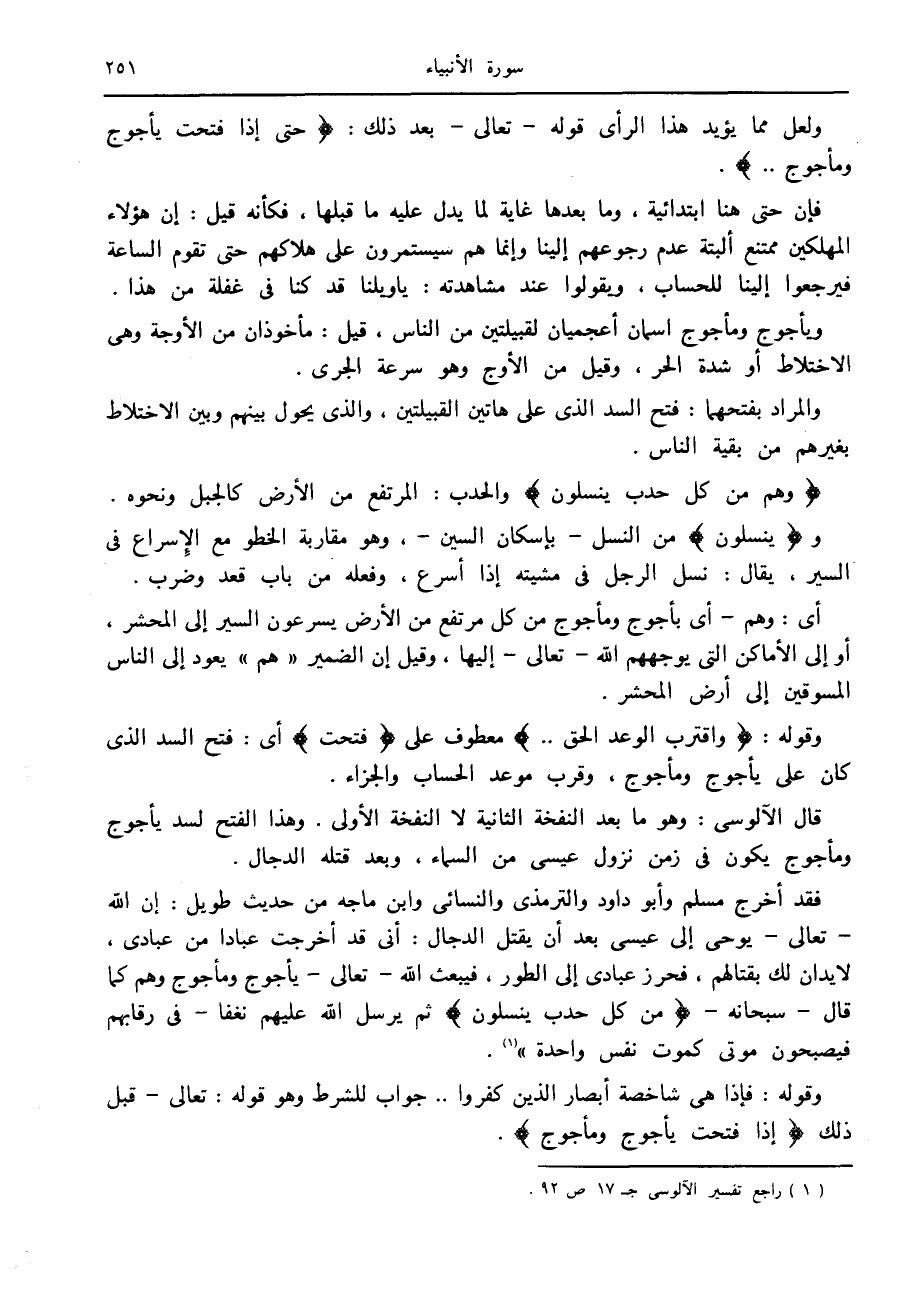 (1) راجع تفسير الآلوسى ج 17 ص 92.