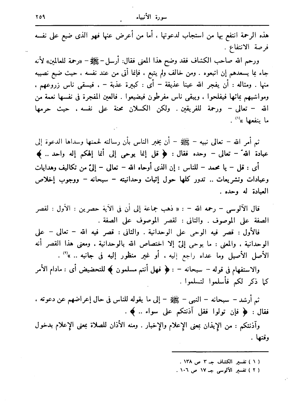 (2) تفسير الآلوسى ج 17 ص 106.