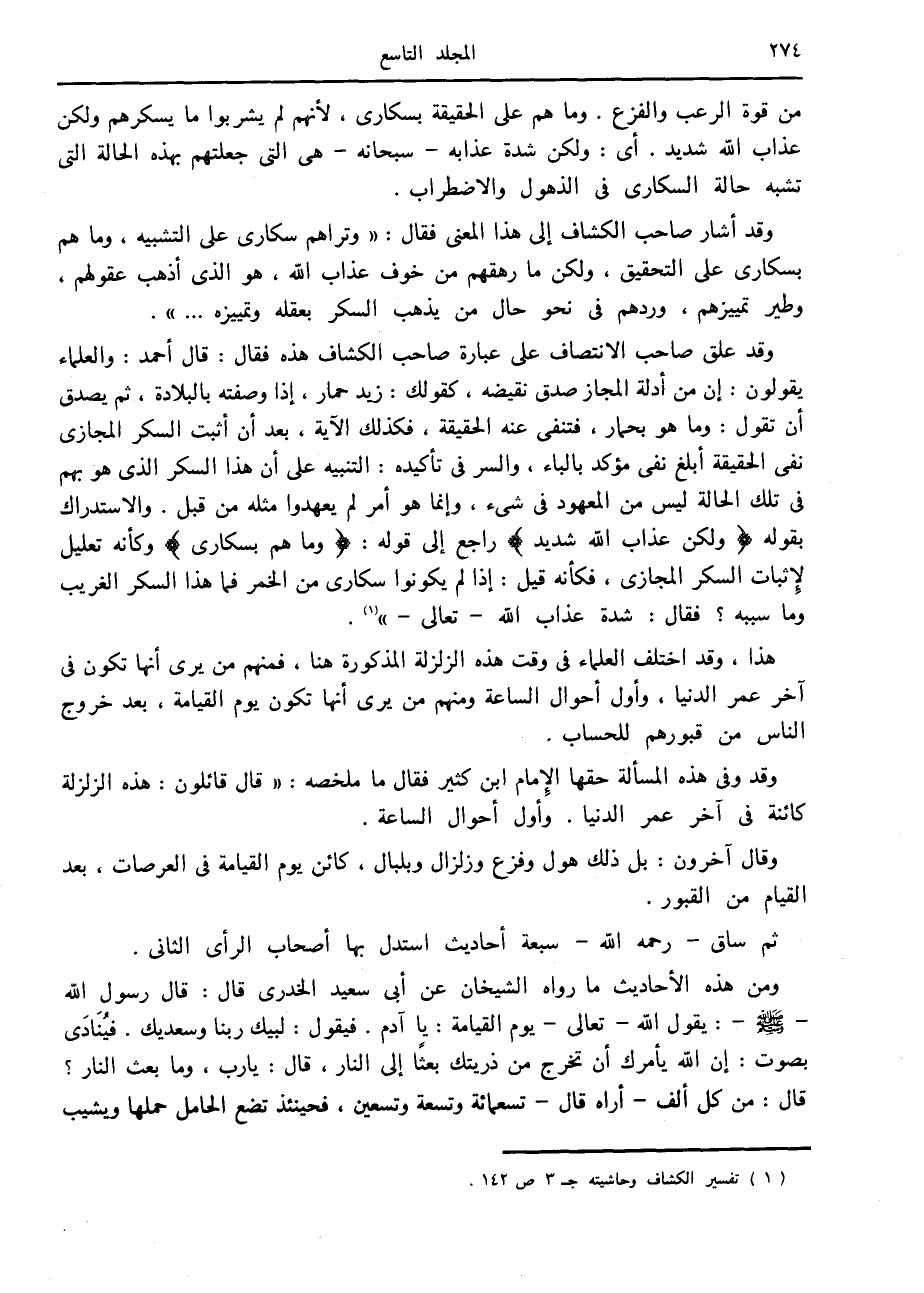 وقد وفي هذه المسألة حقها الإمام ابن كثير فقال ما ملخصه: «قال قائلون: هذه الزلزلة كائنة في آخر عمر الدنيا. وأول أحوال الساعة.