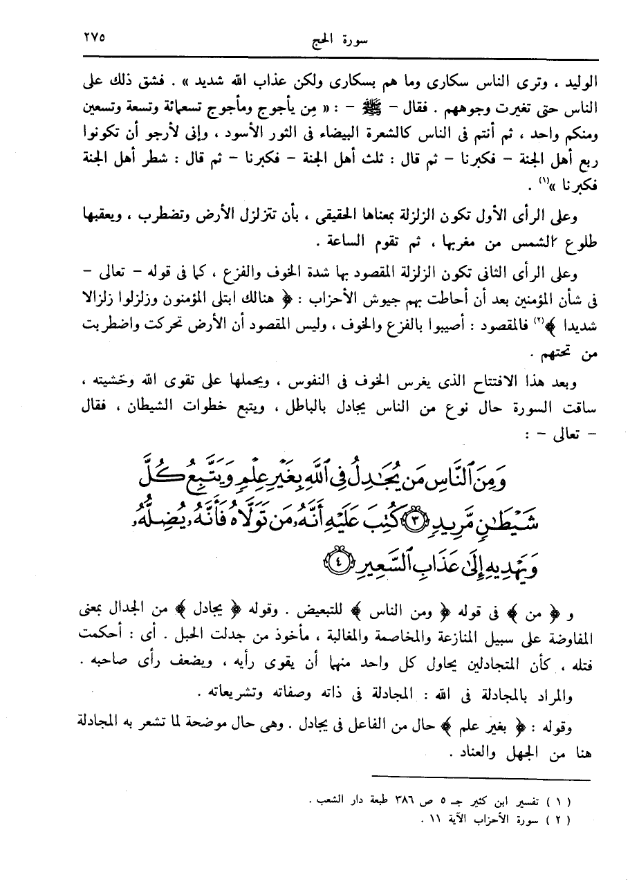 (1) تفسير ابن كثير ج 5 ص 386 طبعة دار الشعب.