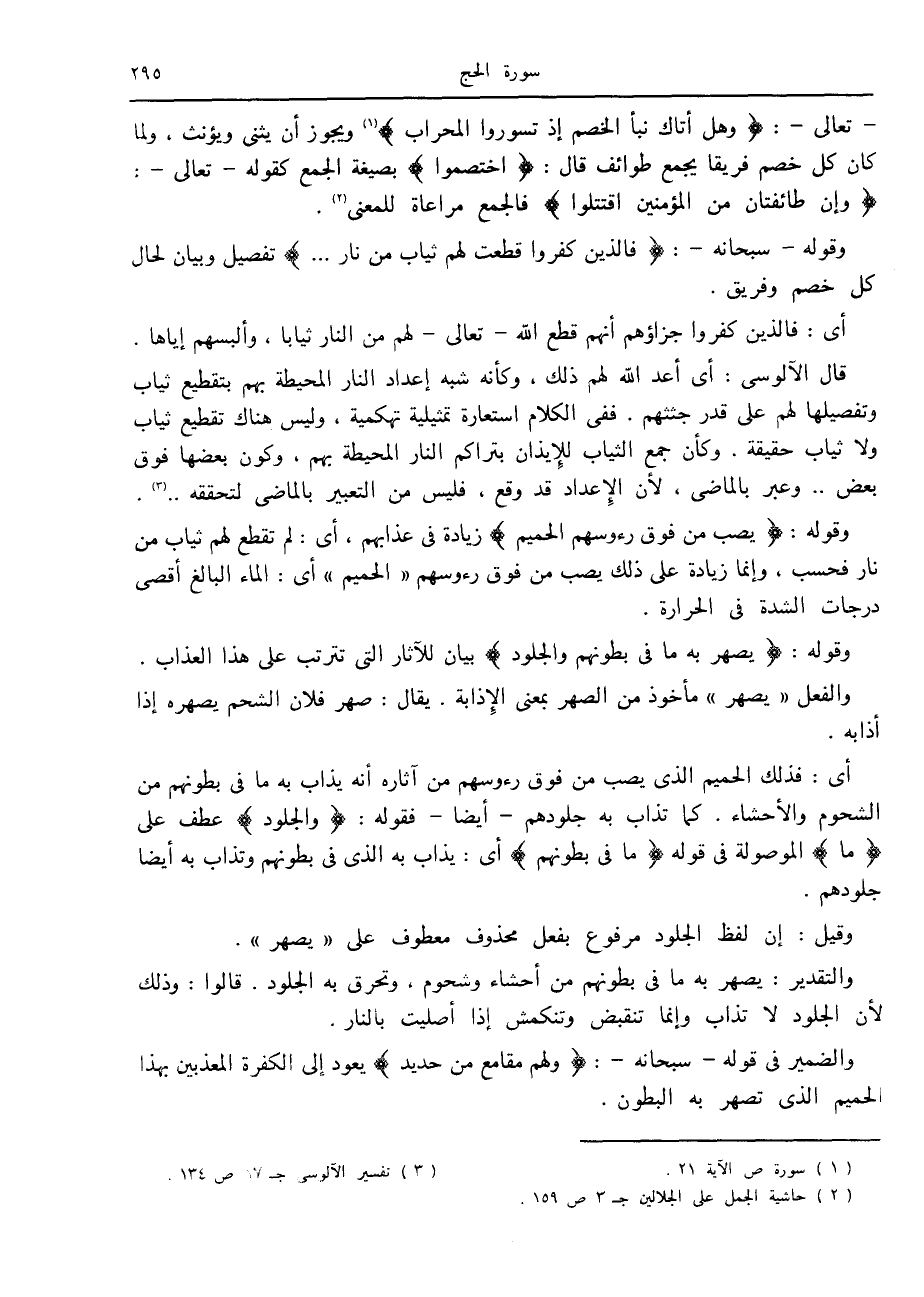 (2) حاشية الجمل على الجلالين ج 3 ص 159.