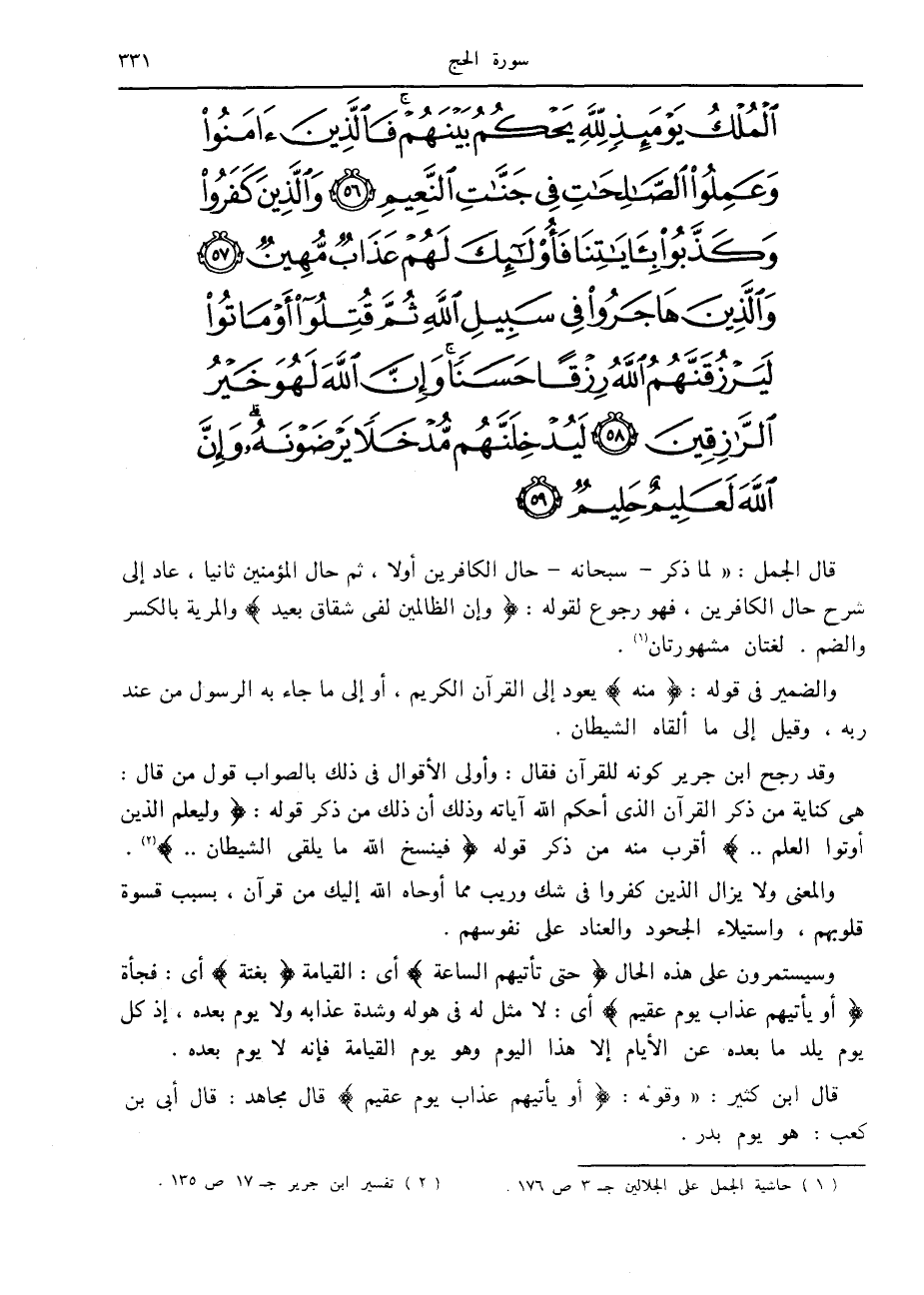 (1) حاشية الجمل على الجلالين ج 3 ص 176.