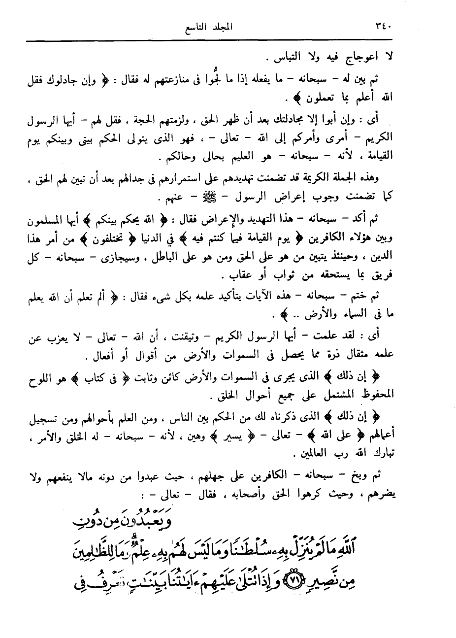 وهذه الجملة الكريمة قد تضمنت تهديدهم على استمرارهم في جدالهم بعد أن تبين لهم الحق، كما تضمنت وجوب إعراض الرسول صلّى الله عليه وسلّم عنهم.