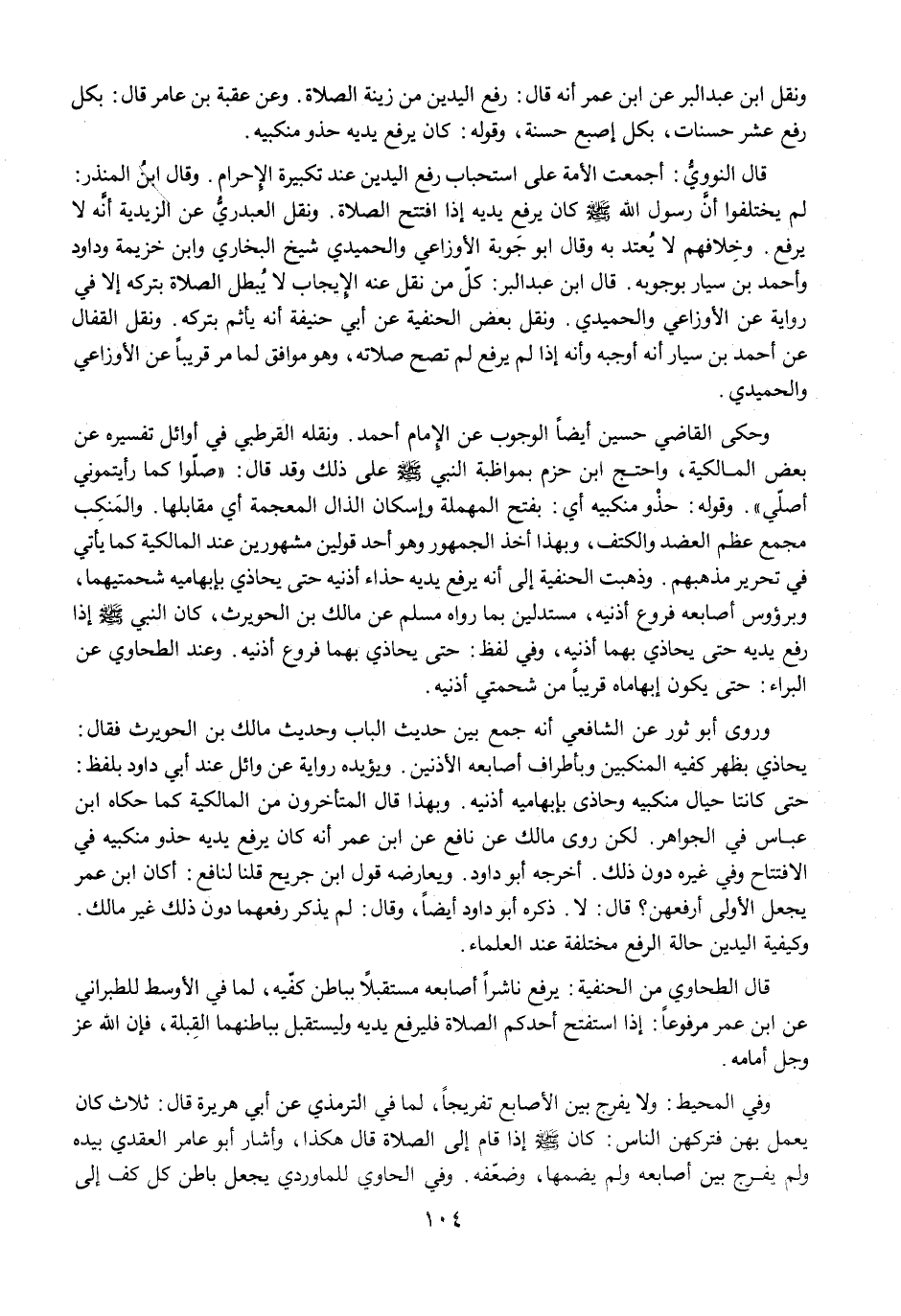 ونقل ابن عبد البر عن ابن عمر أنه قال: رفع اليدين من زينة الصلاة. وعن عقبة بن عامر قال: بكل رفع عشر حسنات، بكل إصبع حسنة، وقوله: كان يرفع يديه حذو منكبيه.