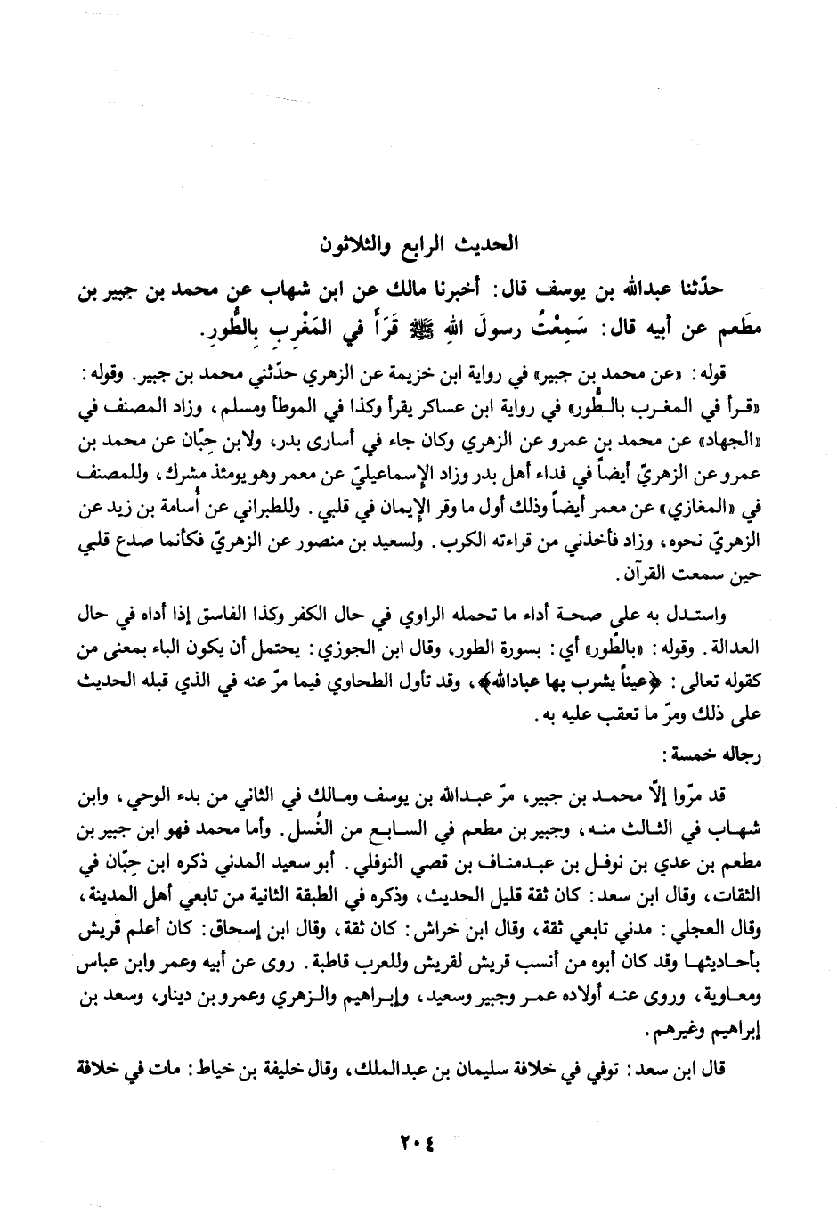 قد مرّوا إلاَّ محمد بن جبير، مرَّ عبد الله بن يوسف ومالك في الثاني من بدء الوحي، وابن شهاب في الثالث منه، وجبير بن مطعم في السابع من الغُسل. وأما محمد فهو ابن جبير بن مطعم بن عدي بن نوفل بن عبد مناف بن قصي النوفلي. أبو سعيد المدني ذكره ابن حِبّان في الثقات، وقال ابن سعد: كان ثقة قليل الحديث، وذكره في الطبقة الثانية من تابعي أهل المدينة، وقال العجلي: مدني تابعي ثقة، وقال ابن خراش: كان ثقة، وقال ابن إسحاق: كان أعلم قريش بأحاديثها وقد كان أبوه من أنسب قريش لقريش وللعرب قاطبة. روى عن أبيه وعمر وابن عباس ومعاوية، وروى عنه أولاده عمر وجبير وسعيد، وإبراهيم والزهري وعمرو بن دينار، وسعد بن إبراهيم وغيرهم.