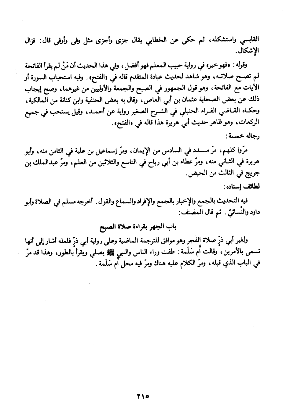 فيه التحديث بالجمع والإخبار بالجمع والإفراد والسماع والقول. أخرجه مسلم في الصلاة وأبو داو والنَّسائيّ. ثم قال المضنف: