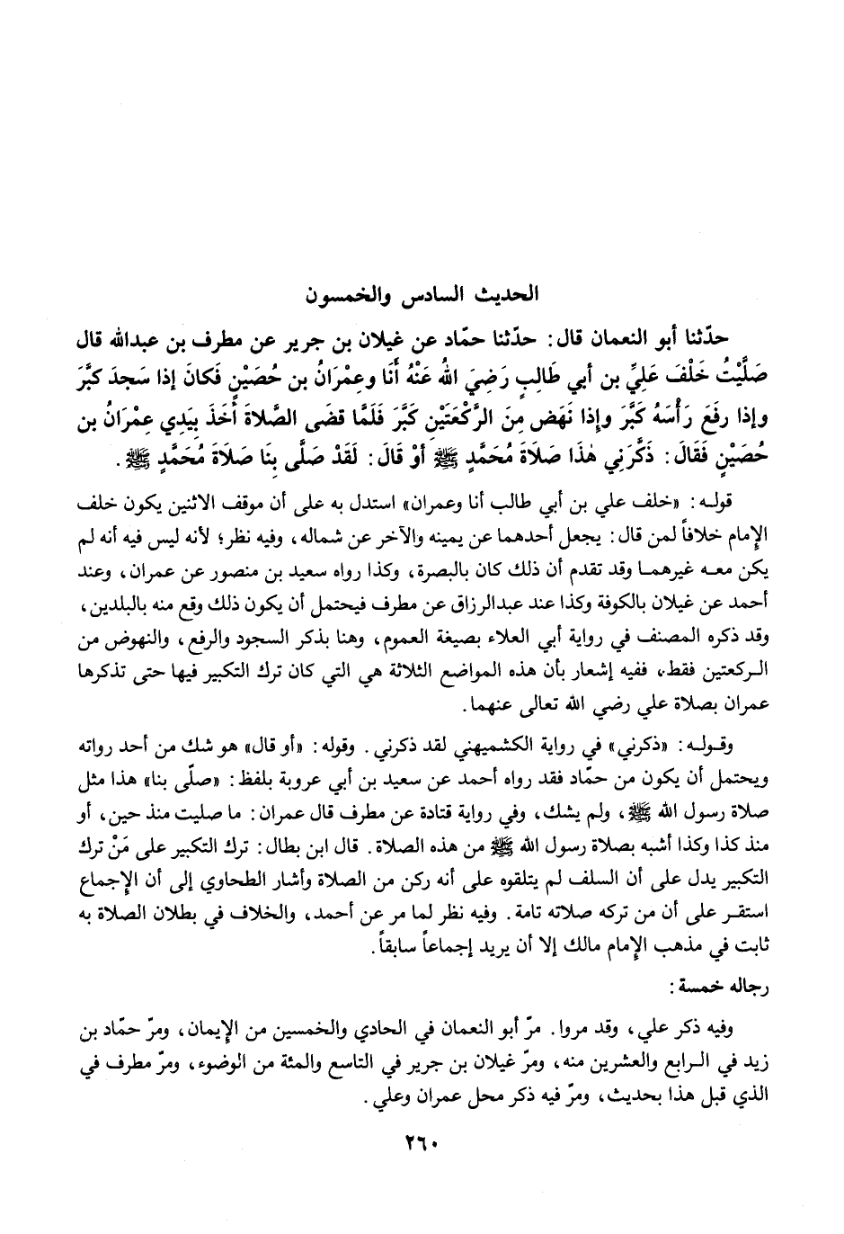 وفيه ذكر علي، وقد مروا. مرّ أبو النعمان في الحادي والخمسين من الإيمان، ومرّ حمّاد بن زيد في الرابع والعشرين منه، ومرّ غيلان بن جرير في التاسع والمئة من الوضوء، ومرّ مطرف في الذي قبل هذا بحديث، ومرّ فيه ذكر محل عمران وعلي.