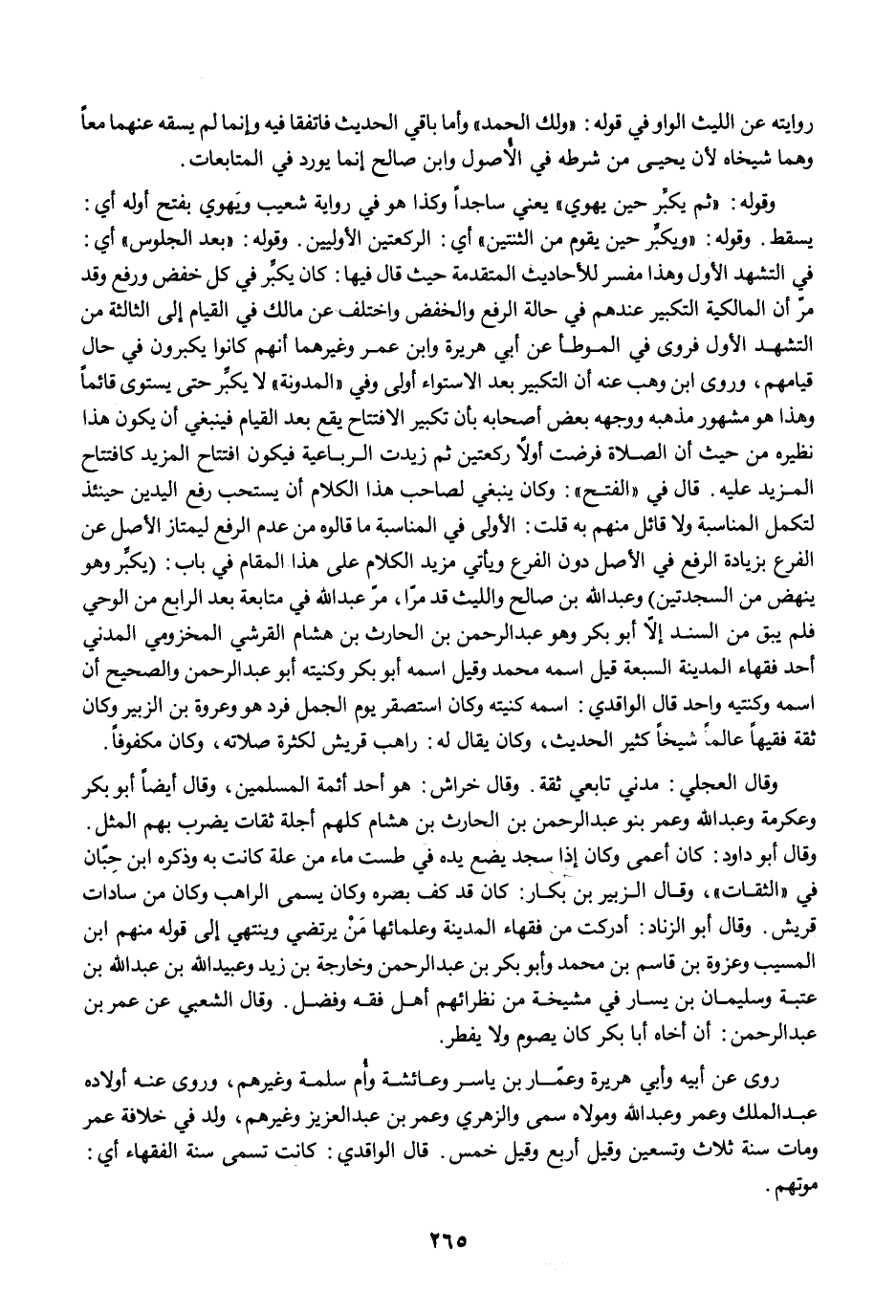 وقوله: "ثم يكبّر حين يهوى" يعني ساجدًا وكذا هو في رواية شعيب ويَهوي بفتح أوله أي: يسقط. وقوله: "ويكبِّر حين يقوم من الثنتين" أي: الركعتين الأوليين. وقوله: "بعد الجلوس" أي: في التشهد الأول وهذا مفسر للأحاديث المتقدمة حيث قال فيها: كان يكبِّر في كل خفض ورفع وقد مرّ أن المالكية التكبير عندهم في حالة الرفع والخفض واختلف عن مالك في القيام إلى الثالثة من التشهد الأول فروى في الموطأ عن أبي هريرة وابن عمر وغيرهما أنهم كانوا يكبرون في حال قيامهم، وروى ابن وهب عنه أن التكبير بعد الاستواء أولى وفي "المدونة" لا يكبِّر حتى يستوى قائمًا وهذا هو مشهور مذهبه ووجهه بعض أصحابه بأن تكبير الافتتاح يقع بعد القيام فينبغي أن يكون هذا نظيره من حيث أن الصلاة فرضت أولًا ركعتين ثم زيدت الرباعية فيكون افتتاح المزيد كافتتاح المزيد عليه. قال في "الفتح": وكان ينبغي لصاحب هذا الكلام أن يستحب رفع اليدين حينئذ لتكمل المناسبة ولا قائل منهم به قلت: الأولى في المناسبة ما قالوه من عدم الرفع ليمتاز الأصل عن الفرع بزيادة الرفع في الأصل دون الفرع ويأتي مزيد الكلام على هذا المقام في باب: (يكبِّر وهو ينهض من السجدتين) وعبد الله بن صالح والليث قد مرّا، مرَّ عبد الله في متابعة بعد الرابع من الوحي فلم يبق من السند إلاّ أبو بكر وهو عبد الرحمن بن الحارث بن هشام القرشي المخزومي المدني أحد فقهاء المدينة السبعة قيل اسمه محمد وقيل اسمه أبو بكر وكنيته أبو عبد الرحمن والصحيح أن اسمه وكنتيه واحد قال الواقدي: اسمه كنيته وكان استصقر يوم الجمل فرد هو وعروة بن الزبير وكان ثقة فقيهًا عالماً شيخًا كثير الحديث، وكان يقال له: واهب قريش لكثرة صلاته، وكان مكفوفًا.