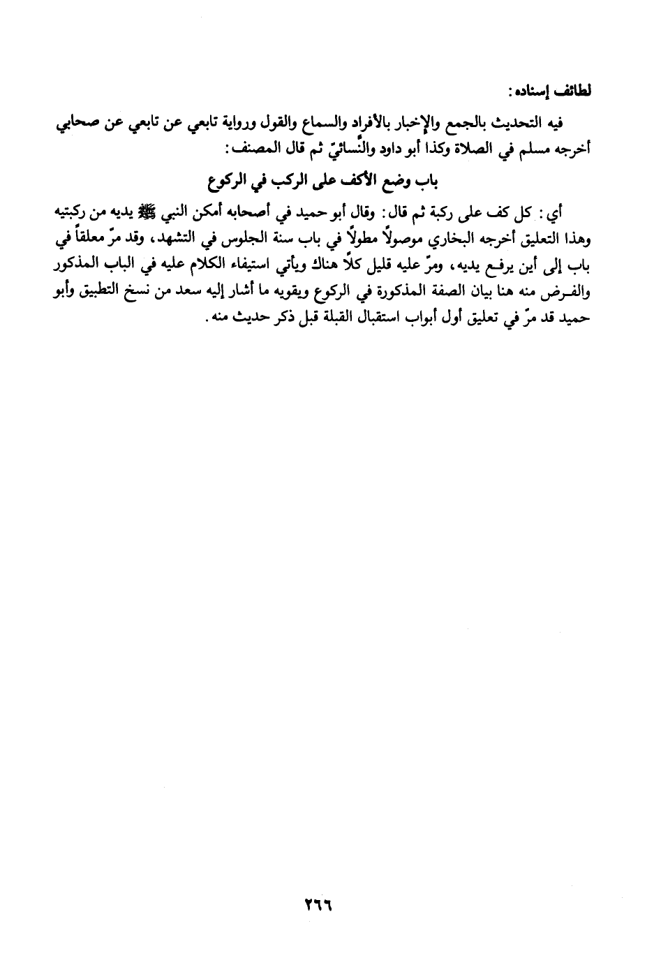 فيه التحديث بالجمع والإخبار بالأفراد والسماع والقول ورواية تابعي عن تابعي عن صحابي أخرجه مسلم في الصلاة وكذا أبو داو والنَّسائيّ ثم قال المصنف:
