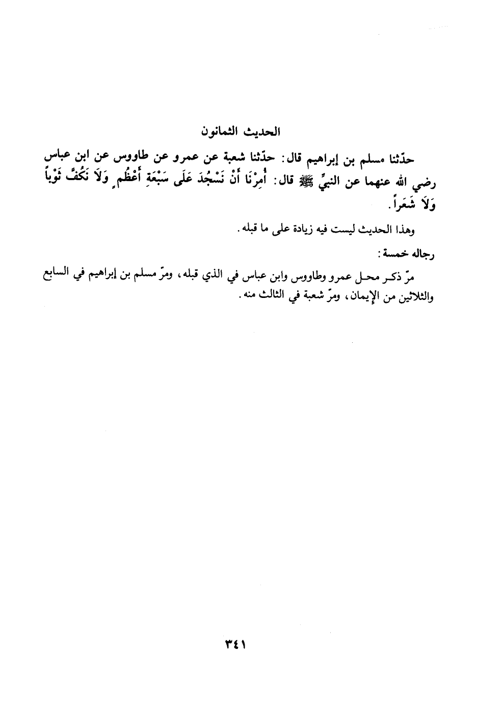 مرّ ذكر محل عمرو وطاووس وابن عباس في الذي قبله، ومرّ مسلم بن إبراهيم في السابع والثلاثين من الإيمان, ومرّ شعبة في الثالث منه.