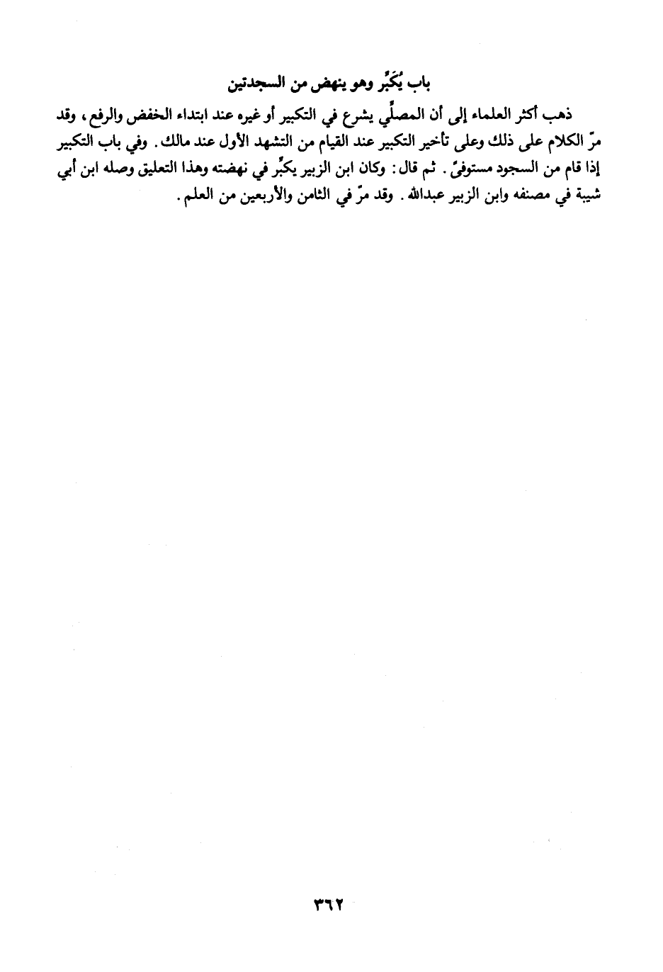 ذهب أكثر العلماء إلى أن المصلِّي يشرع في التكبير أو غيره عند ابتداء الخفض والرفع، وقد مرّ الكلام على ذلك وعلى تأخير التكبير عند القيام من التشهد الأول عند مالك. وفي باب التكبير إذا قام من السجود مستوفىً. ثم قال: وكان ابن الزبير يكبِّر في نهضته وهذا التعليق وصله ابن أبي شيبة في مصنفه وابن الزبير عبد الله. وقد مرّ في الثامن والأربعين من العلم.