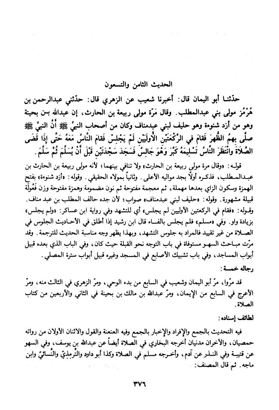 قد مرّوا، مرّ أبو اليمان وشعيب في السابع من بدء الوحي، ومرّ الزهري في الثالث منه، ومرّ الأعرج في السابع من الإِيمان, ومرّ عبد الله بن مالك بن بحينة في الثاني والأربعين من كتاب الصلاة.