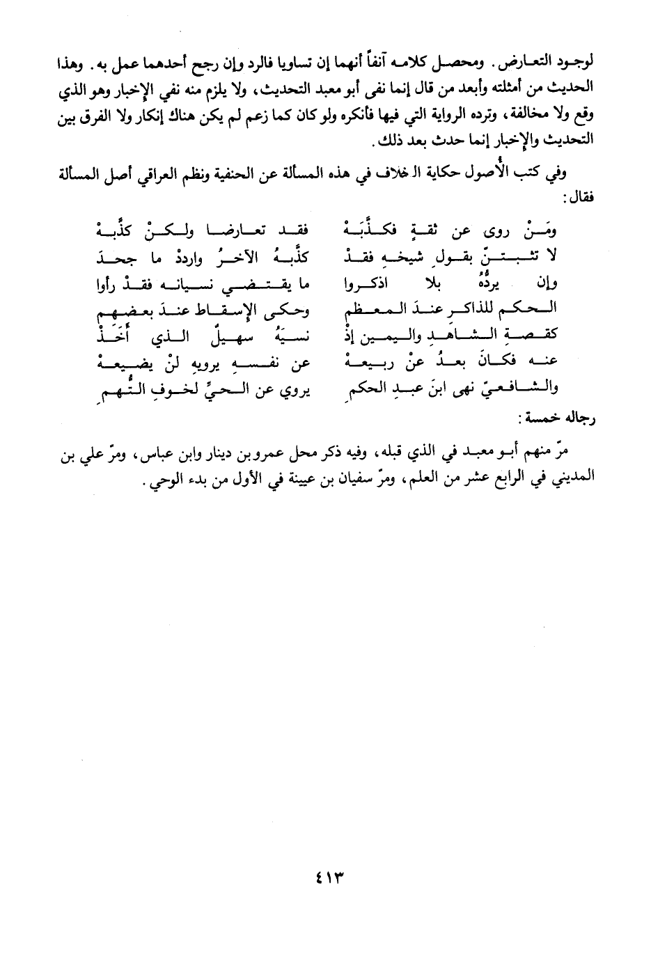 وفي كتب الأُصول حكاية الخلاف في هذه المسألة عن الحنفية ونظم العراقي أصل المسألة فقال: