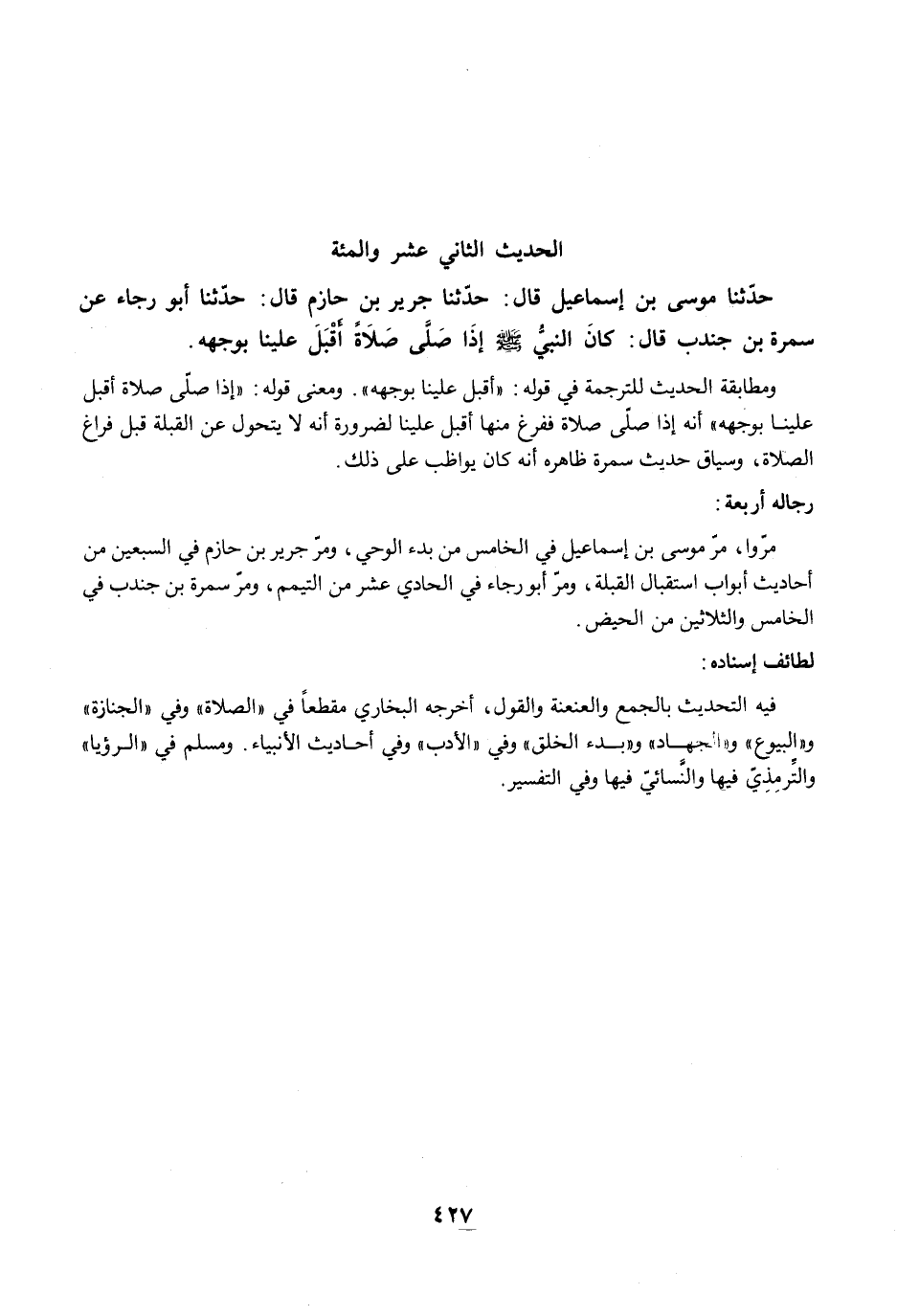 مرّوا، مرّ موسى بن إسماعيل في الخامس من بدء الوحي، ومرّ جرير بن حازم في السبعين من أحاديث أبواب استقبال القبلة، ومرّ أبو رجاء في الحادي عشر من التيمم، ومرّ سمرة بن جندب في الخامس والثلاثين من الحيض.