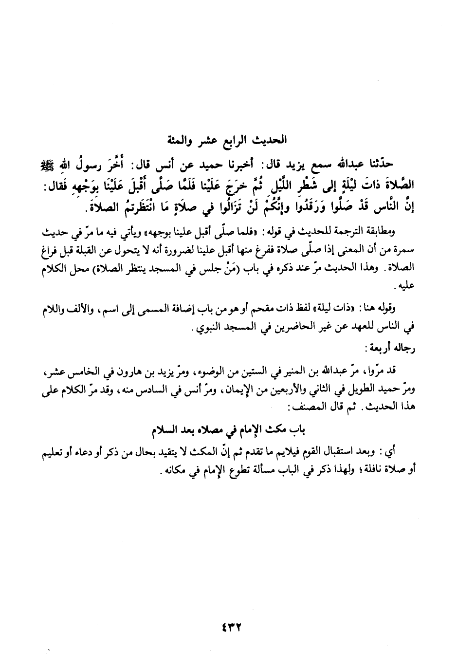 قد مرّوا، مرّ عبد الله بن المنير في الستين من الوضوء، ومرّ يزيد بن هارون في الخامس عشر، ومرّ حميد الطويل في الثاني والأربعين من الإيمان، ومرّ أنس في السادس منه، وقد مرّ الكلام على هذا الحديث. ثم قال المصنف: