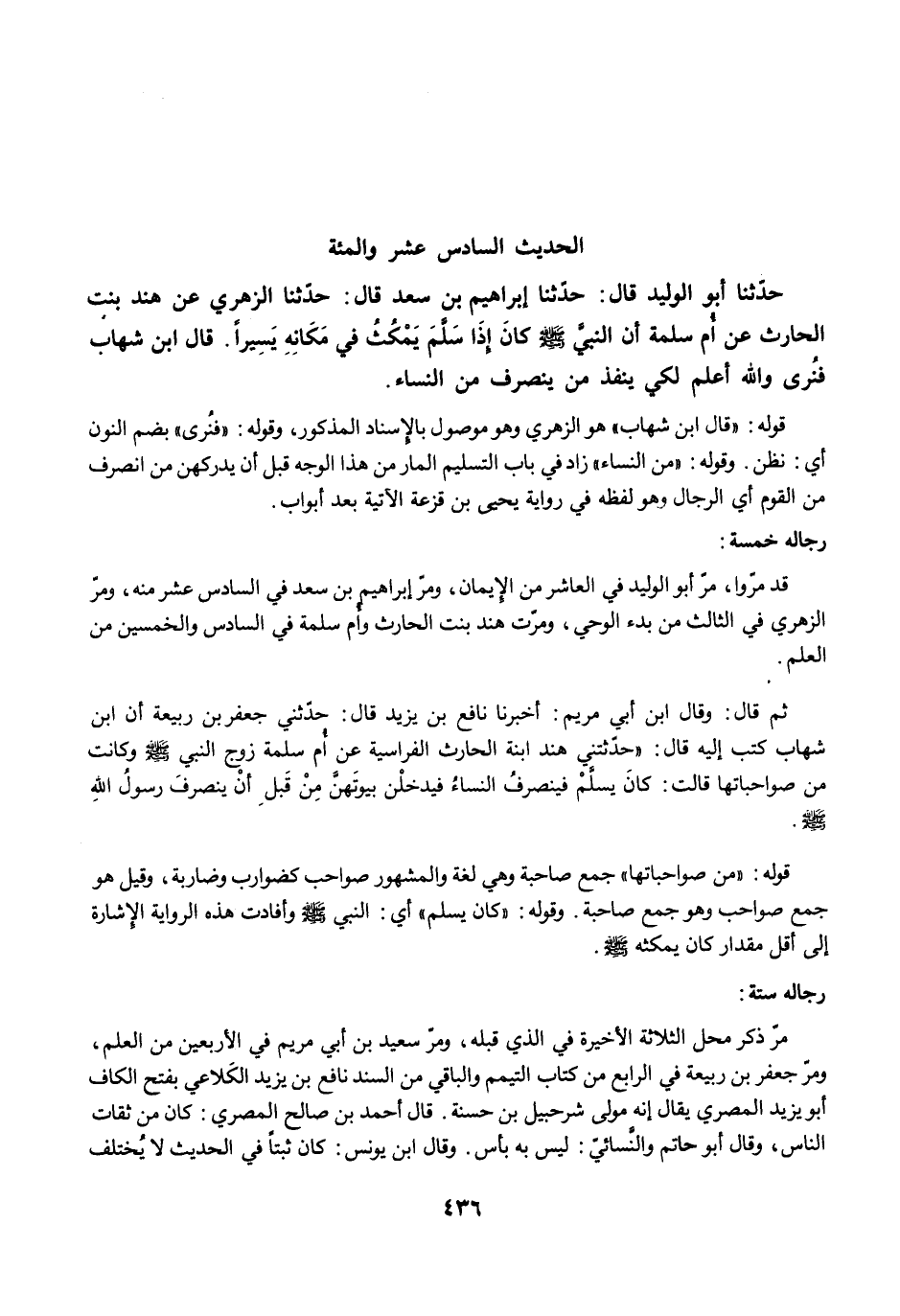 قد مرّوا، مرَّ أبو الوليد في العاشر من الإيمان، ومرّ إبراهيم بن سعد في السادس عشر منه، ومرّ الزهري في الثالث من بدء الوحي، ومرّت هند بنت الحارث وأُم سلمة في السادس والخمسين من العلم.