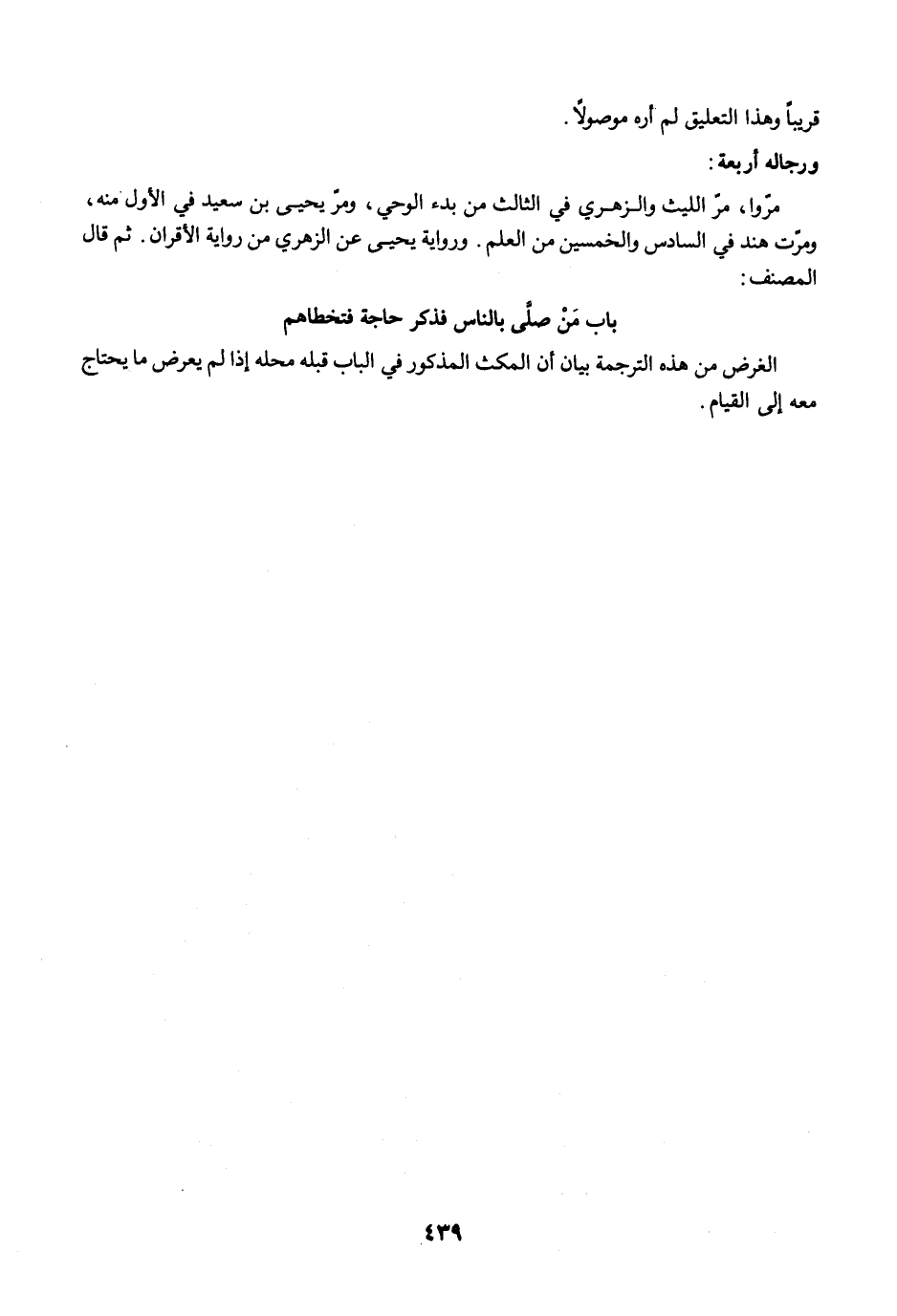 مرّوا، مرّ الليث والزهري في الثالث من بدء الوحي، ومرّ يحيى بن سعيد في الأول منه، ومرّت هند في السادس والخمسين من العلم. ورواية يحيى عن الزهري من رواية الأقران. ثم قال المصنف: