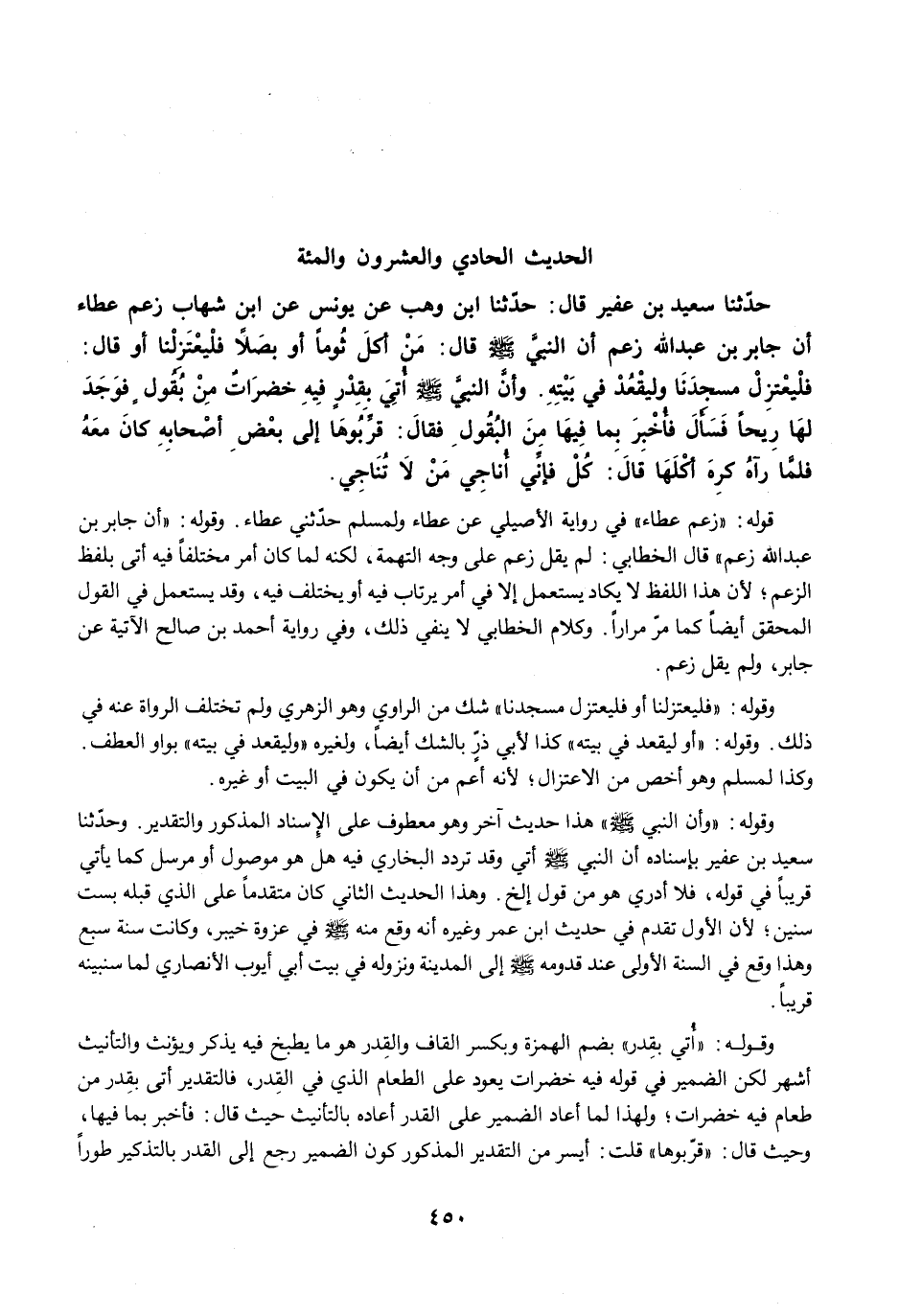 حَدَّثَنَا سَعِيدُ بْنُ عُفَيْرٍ قَالَ: حَدَّثَنَا ابْنُ وَهْبٍ عَنْ يُونُسَ عَنِ ابْنِ شِهَابٍ زَعَمَ عَطَاءٌ أَنَّ جَابِرَ بْنَ عَبْدِ اللَّهِ زَعَمَ أَنَّ النَّبِيَّ -صلى الله عليه وسلم- قَالَ: مَنْ أَكَلَ ثُومًا أَوْ بَصَلاً فَلْيَعْتَزِلْنَا أَوْ قَالَ: فَلْيَعْتَزِلْ مَسْجِدَنَا، وَلْيَقْعُدْ فِي بَيْتِهِ. وَأَنَّ النَّبِيَّ -صلى الله عليه وسلم- أُتِىَ بِقِدْرٍ فِيهِ خَضِرَاتٌ مِنْ بُقُولٍ، فَوَجَدَ لَهَا رِيحًا فَسَأَلَ فَأُخْبِرَ بِمَا فِيهَا مِنَ الْبُقُولِ فَقَالَ: قَرِّبُوهَا إِلَى بَعْضِ أَصْحَابِهِ كَانَ مَعَهُ، فَلَمَّا رَآهُ كَرِهَ أَكْلَهَا قَالَ: كُلْ فَإِنِّي أُنَاجِي مَنْ لاَ تُنَاجِي.