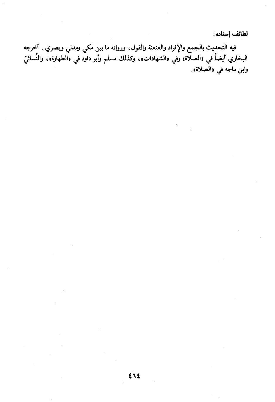 فيه التحديث بالجمع والإفراد والعنعنة والقول، ورواته ما بين مكي ومدني وبصري. أخرجه البخاري أيضًا فيا الصلاة، وفي "الشهادات"، وكذلك مسلم وأبو داود في "الطهارة"، والنَّسائيّ وابن ماجه في "الصلاة".