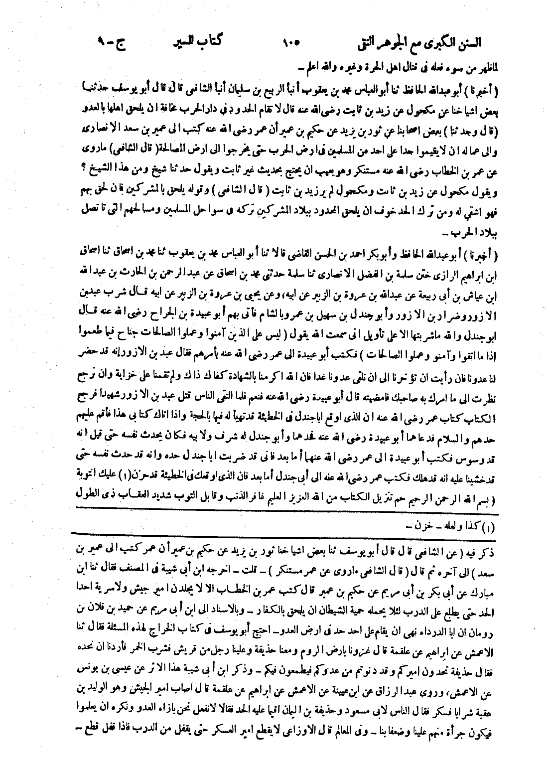 [ذكر فيه (عن الشافعي قال قال أبو يوسف ثنا بعض اشياخنا ثور بن يزيد عن حكيم بن عمير أن عمر كتب إلى عمير بن سعد) إلى آخره ثم قال (قال الشافعي ما روى عن عمر مستنكر) - قلت - اخرجه ابن أبى شيبة في المصنف فقال ثنا ابن