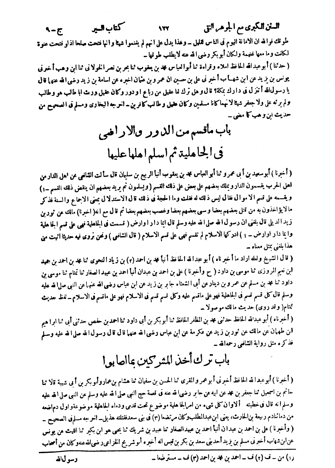 - باب ما قسم من الدور والاراضي في الجاهلية ثم اسلم اهلها عليها