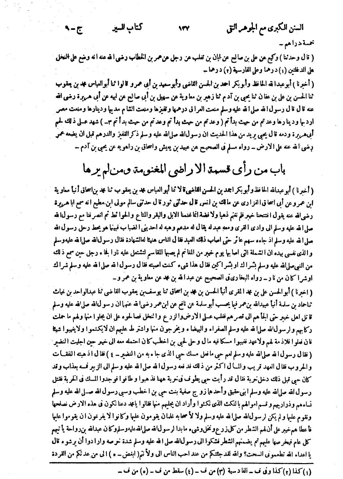 - باب من رأى قسمة الاراضي المغنومة ومن لم يرها