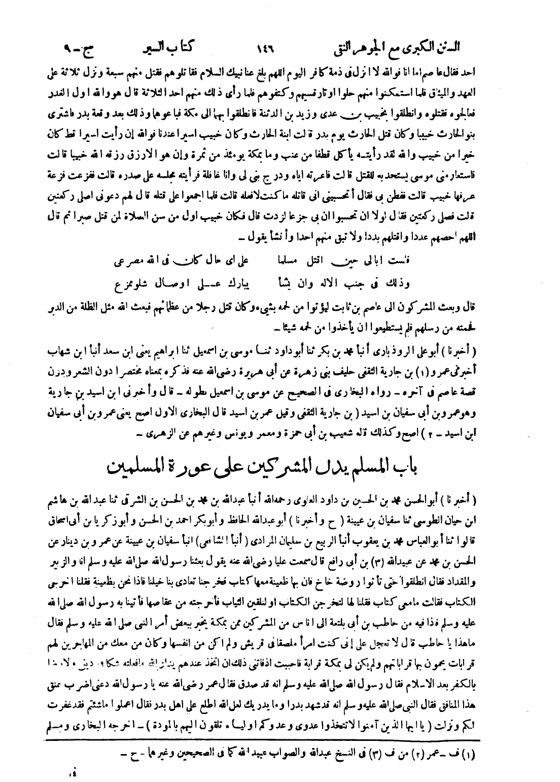- (أخبرنا) أبو على الروذبارى أنبأ محمد بن بكر ثنا أبو داود ثنا موسى بن اسمعيل ثنا ابراهيم يعنى ابن سعد أنبأ ابن شهاب أخبرني عمرو (1) بن جارية الثقفى حليف بنى زهرة عن أبى هريرة رضى الله عنه فذكره بمعناه مختصرا دون الشعر ودون قصة عاصم في آخره - رواه البخاري في الصحيح عن موسى بن اسمعيل بطوله - قال وأخبرني ابن اسيد بن جارية وهو عمرو بن أبى سفيان بن اسيد (بن جارية الثقفى وقيل عمر بن اسيد قال البخاري الاول اصح يعنى عمرو بن أبى سفيان ابن اسيد - 2) اصح وكذلك قاله شعيب بن أبى حمزة ومعمر ويونس وغيرهم عن الزهري