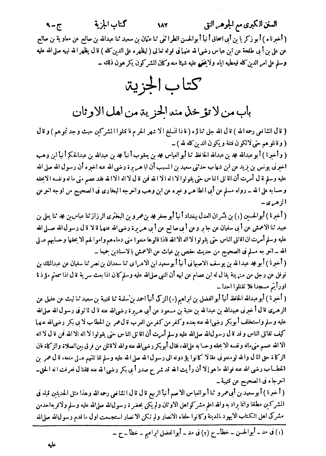 باب من لا تؤخذ منه الجزية من اهل الاوثان