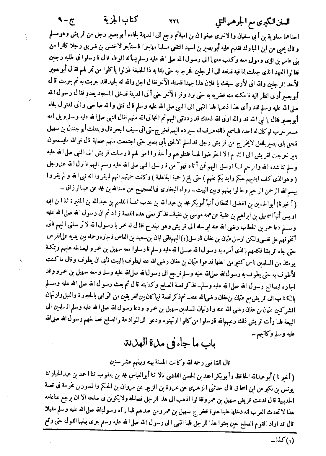 - باب ما جاء في مدة الهدنة قال الشافعي رحمه الله وكانت الهدنة بينه وبينهم عشر سنين