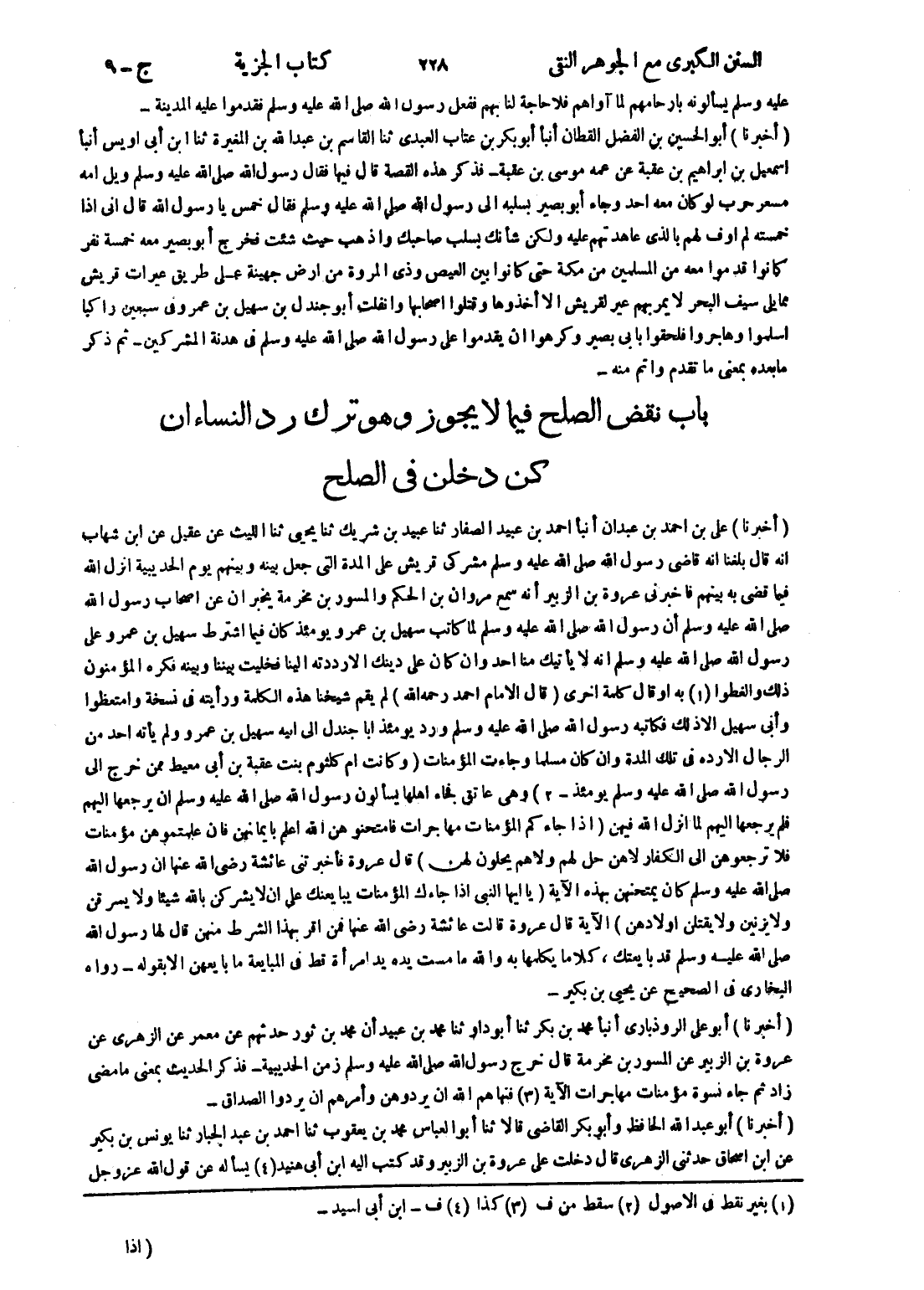 - باب نقض الصلح فيما لا يجوز وهو ترك رد النساء ان كن دخلن في الصلح