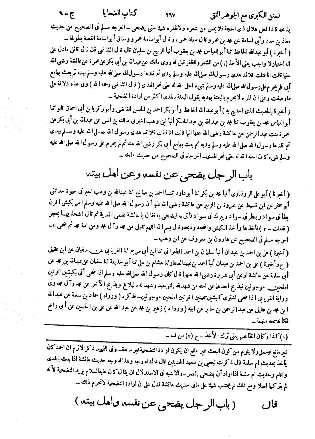 [غير مانع فيعمل ولا يلزم من كون البعث غير مانع ان يكون ارادة التضحية غير مانعة - وفى التمهيد ذكر الاثرم ان احمد كان يأخذ بحديث ام سلمة قال ذكرت ليحيى بن سعيد الحديثين قال ذاك له وجه وهذا له وجه حديث عائشة إذا بعث بالهدى واقام وحديث ام سلمة إذا اراد أن يضحى بالمصر - والاشبه في الاستدلال ان يقال كان عليه السلام يريد التضحية لانه لم يتركها اصلا ومع ذلك لم يجتنب شيئا على ما في حديث عائشة فدل على ان ارادة التضحية لا تحرم ذلك - قال (باب الرجل يضحى عن نفسه واهل بيته)