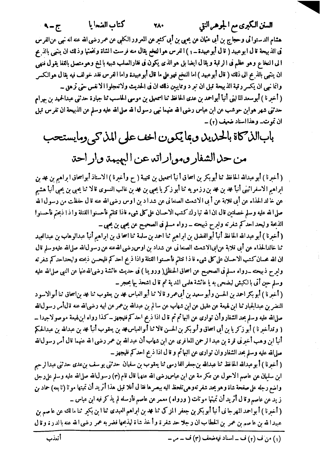 - باب الذكاة بالحديد وبما يكون اخف على المذكى وما يستحب من حد الشفار ومواراته عن البهيمة واراحة
