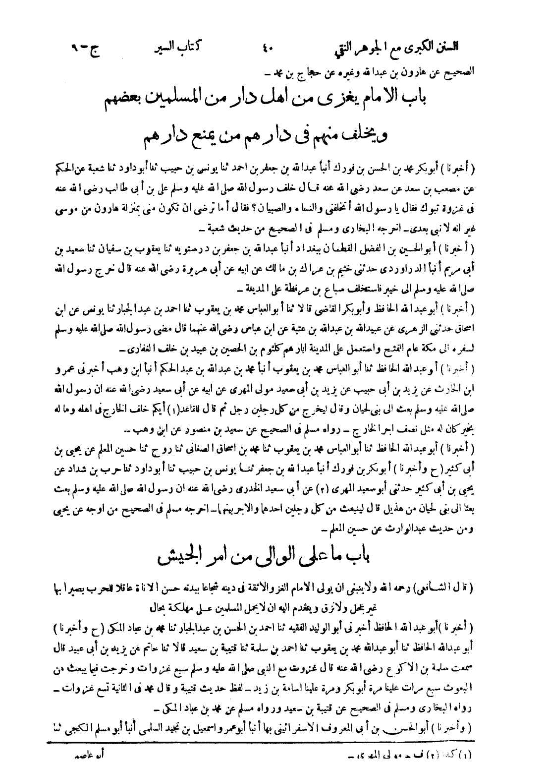 - باب الإمام يغزى من اهل دار من المسلمين بعضهم ويخلف منهم في دارهم من يمنع دارهم