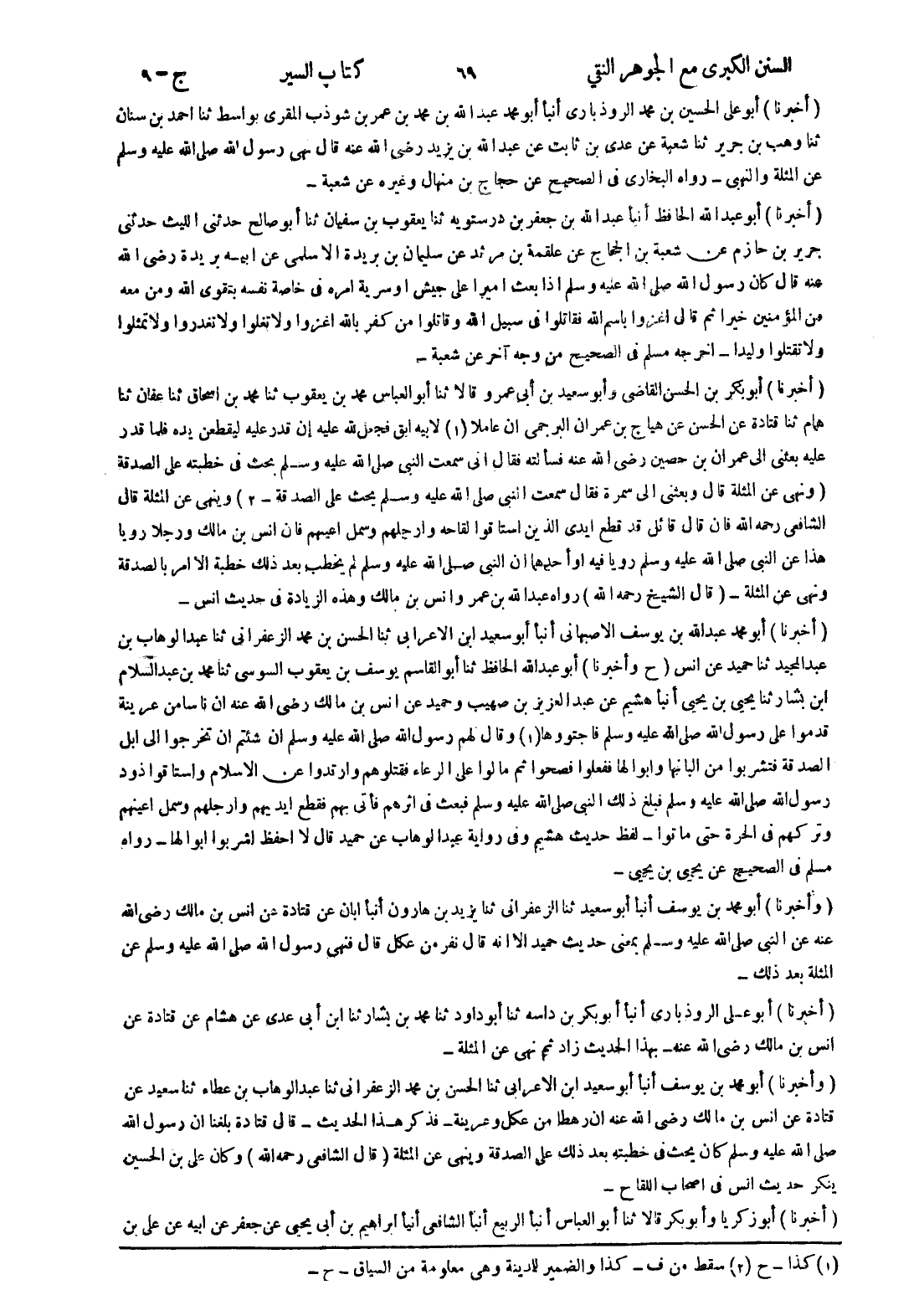 - (أخبرنا) أبو على الروذبارى أنبأ أبو بكر بن داسه ثنا أبو داود ثنا محمد بن بشار ثنا ابن أبى عدى عن هشام عن قتادة عن انس بن مالك رضى الله عنه - بهذا الحديث زاد ثم نهى عن المثلة