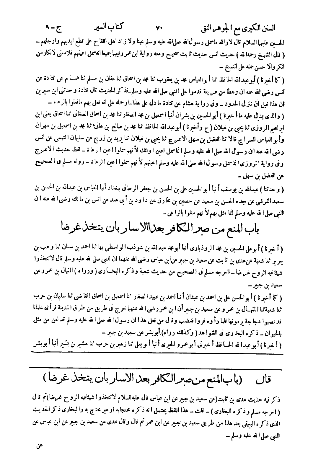 [قال (باب المنع من صبر الكافر بعد الاسار بان يتخذ غرضا) ذكر فيه حديث عدى بن ثابت (عن سعيد بن جبير عن ابن عباس قال عليه السلام لا تتخذوا شيئا فيه الروح غرضا) ثم قال (اخرجه مسلم وذكره البخاري) - قلت - هذا اللفظ يحتمل انه ذكره محتجا به أو غير محتج به والبخاري ذكر الحديث الذى ذكره البيهقى بعد هذا من طريق سعيد بن جبير عن ابن عمر ثم قال وقال عدى عن سعيد بن جبير عن ابن عباس عن النبي صلى الله عليه وسلم -]