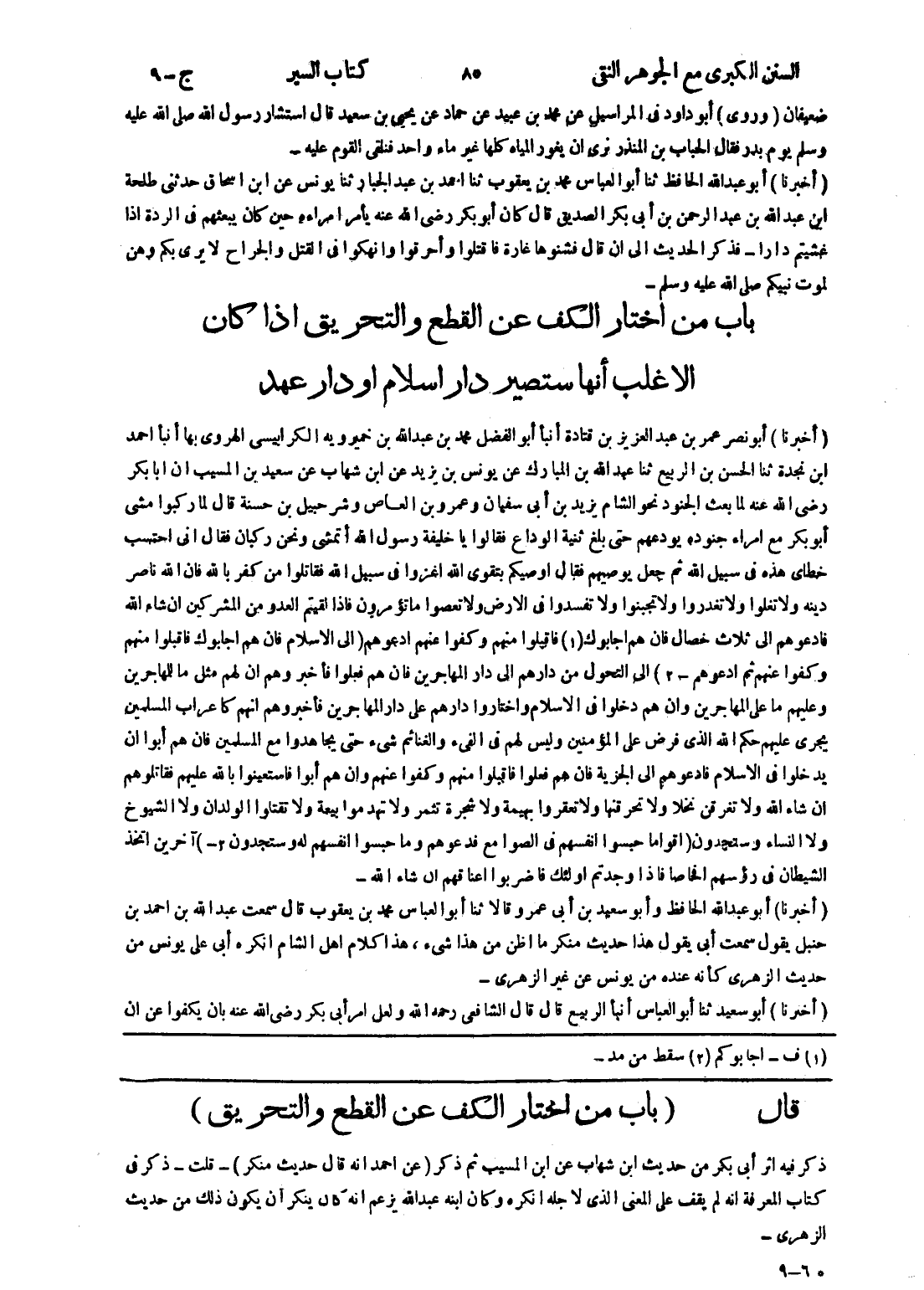 [قال (باب من اختار الكف عن القطع والتحريق) ذكر فيه اثر أبى بكر من حديث ابن شهاب عن ابن المسيب ثم ذكر (عن احمد انه قال حديث منكر) - قلت - ذكر في كتاب المعرفة انه لم يقف على المعنى الذى لاجله انكره وكان ابنه عبد الله يزعم انه كان ينكر أن يكون ذلك من حديث الزهري -