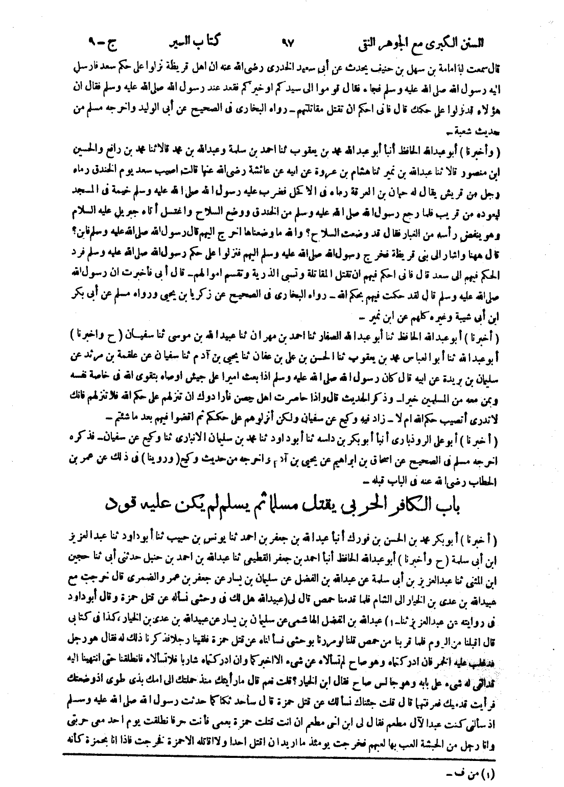 - باب الكافر الحربى يقتل مسلما ثم يسلم لم يكن عليه قود