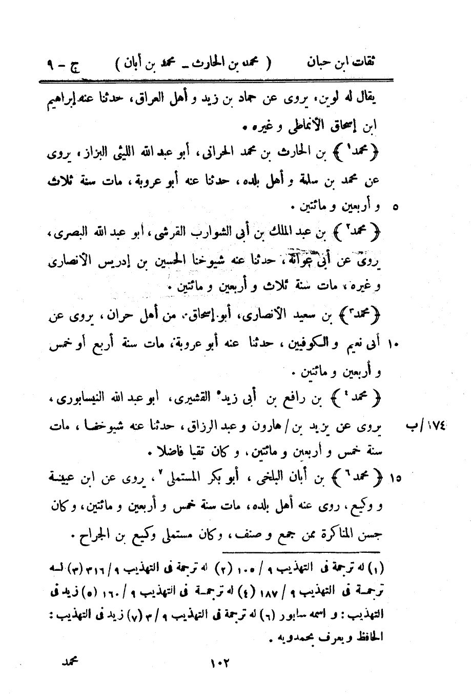 15416 - مُحَمَّد بن الْحَارِث بن مُحَمَّد الْحَرَّانِي أَبُو عبد الله اللَّيْثِيّ الْبَزَّاز يروي عَن مُحَمَّد بن سَلمَة وَأهل بَلَده حَدَّثنا عَنهُ أَبُو عرُوبَة مَاتَ سنة ثَلَاث وَأَرْبَعين وَمِائَتَيْنِ
