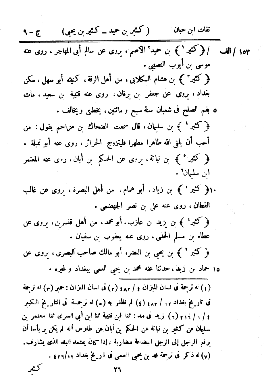 14991 - كثير بن هِشَام الْكلابِي من أهل الرقة كنيته أَبُو سهل سكن بَغْدَاد يروي عَن جَعْفَر بن برْقَان روى عَنهُ قُتَيْبَة بن سعيد مَاتَ بِفَم الصُّلْح فِي شعْبَان سنة سبع وَمِائَتَيْنِ يخطىء وَيُخَالف