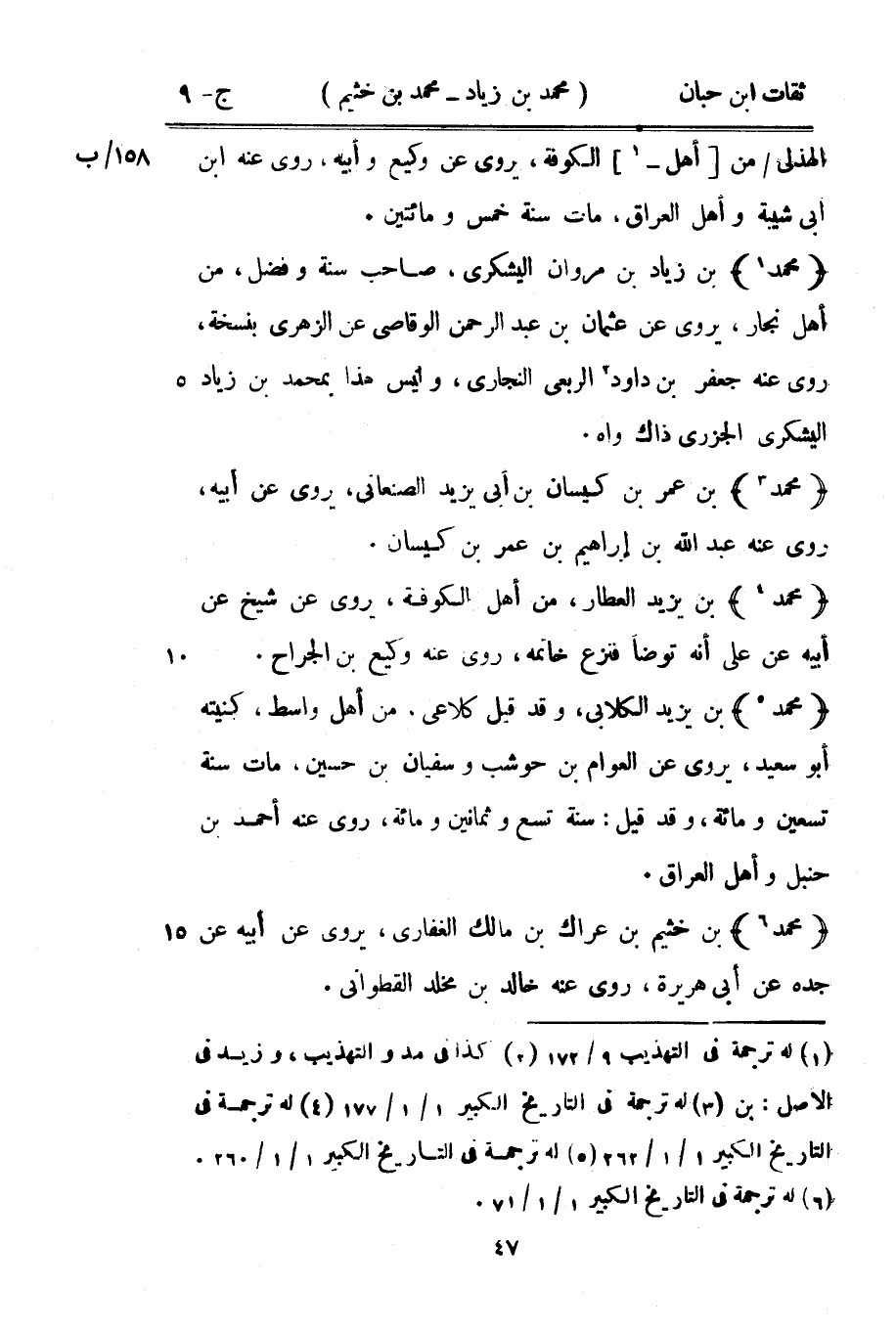 15109 - مُحَمَّد بن زِيَاد بن مَرْوَان الْيَشْكُرِي صَاحب سنة وَفضل من أهل نجار يروي عَن عُثْمَان بن عبد الرَّحْمَن الوقاصي عَن الزُّهْرِي بنسخة روى عَنهُ جَعْفَر بن دَاوُد الربعِي النجاري وَلَيْسَ هَذَا بِمُحَمد بن زِيَاد الْيَشْكُرِي الْجَزرِي ذَاك واه