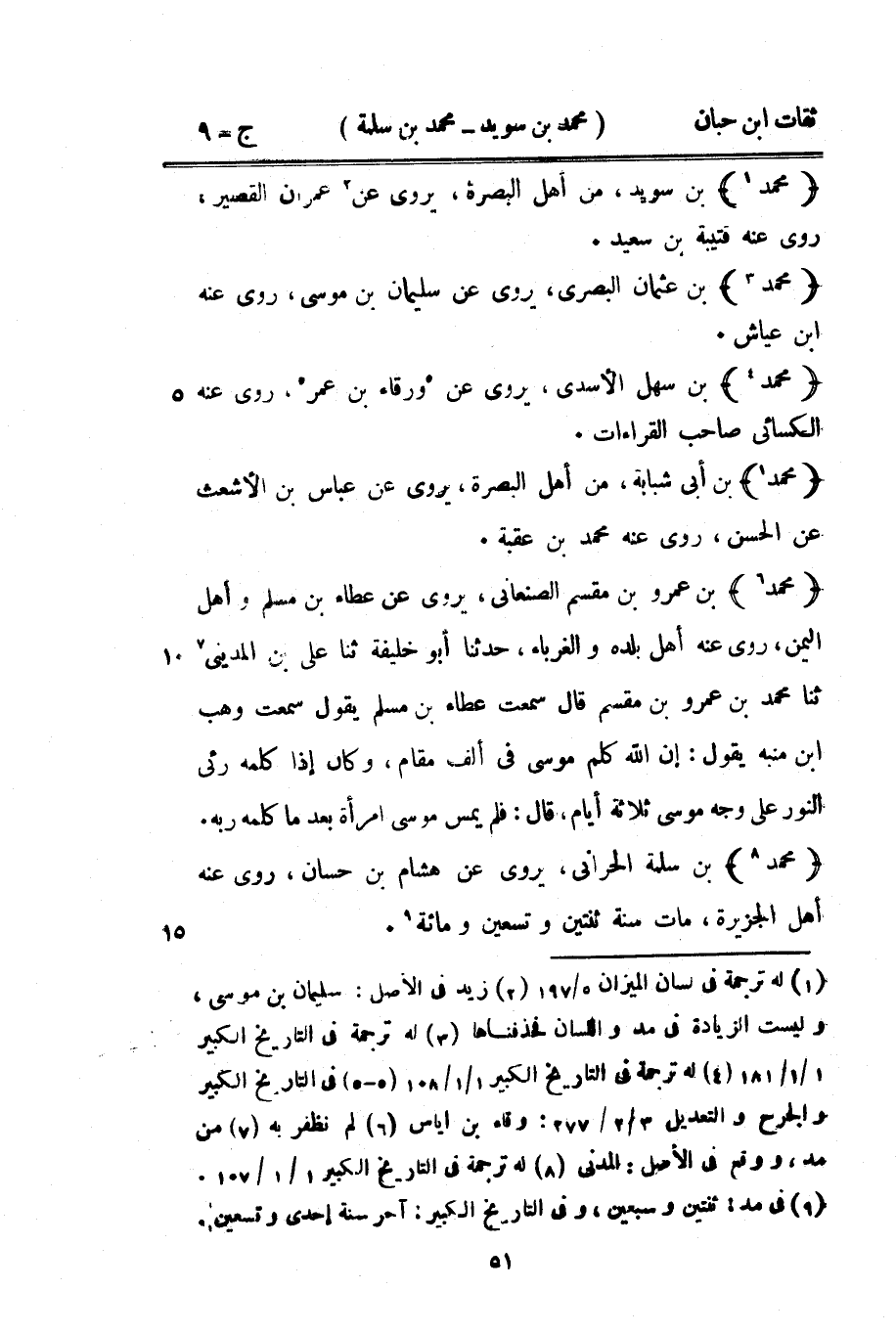 15135 - مُحَمَّد بن سَلمَة الْحَرَّانِي يروي عَن هِشَام بن حسان روى عَنْهُ أهل الجزيرة مَاتَ سنة ثِنْتَيْنِ وَتِسْعين وَمِائَة