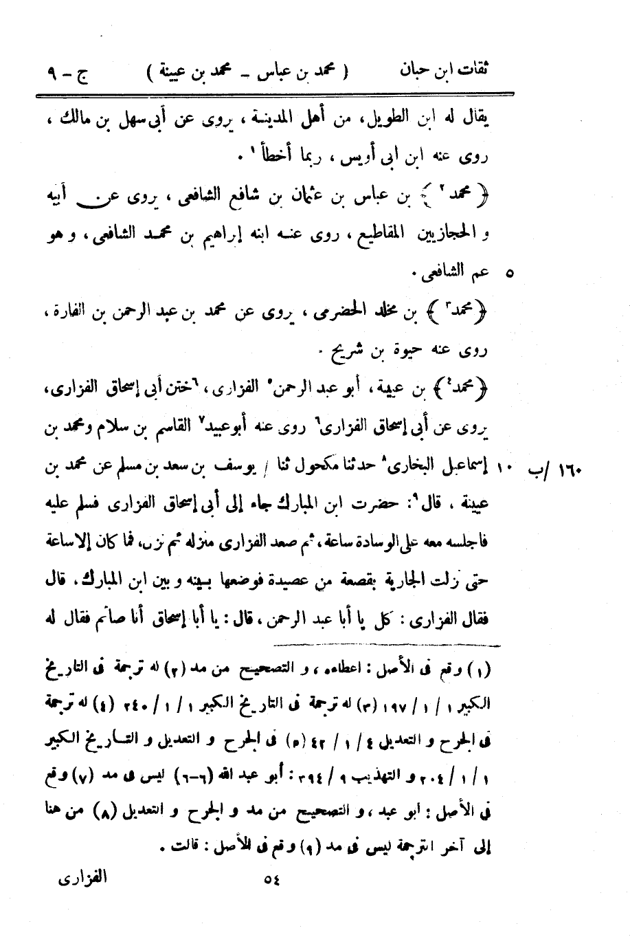 15150 - مُحَمَّد بن عُيَيْنَة أَبُو عبد الرَّحْمَن الْفَزارِيّ ختن أبي إِسْحَاق الْفَزارِيّ يروي عَن أبي إِسْحَاق الْفَزارِيّ روى عَنهُ أَبُو عبيد الْقَاسِم بن سَلام وَمُحَمّد بن إِسْمَاعِيل البُخَارِيّ حَدَّثنا مَكْحُول ثَنَا يُوسُف بن سعد بن مُسلم عَن مُحَمَّد بن عُيَيْنَة قَالَ حضرت بن الْمُبَارك جَاءَ إِلَى أبي إِسْحَاق الْفَزارِيّ فَسلم عَلَيْهِ فأجلسه مَعَه على الوسادة سَاعَة ثمَّ صعد الْفَزارِيّ منزله ثمَّ نزل فَمَا كَانَ إِلَّا سَاعَة حَتَّى نزلت الْجَارِيَة بقصعة من عصيدة فوضعها بَينه وَبَين بن الْمُبَارك قَالَ فَقَالَ الْفَزارِيّ كل يَا أَبَا عبد الرَّحْمَن قَالَ يَا أَبَا إِسْحَاق أَنا صَائِم فَقَالَ لَهُ