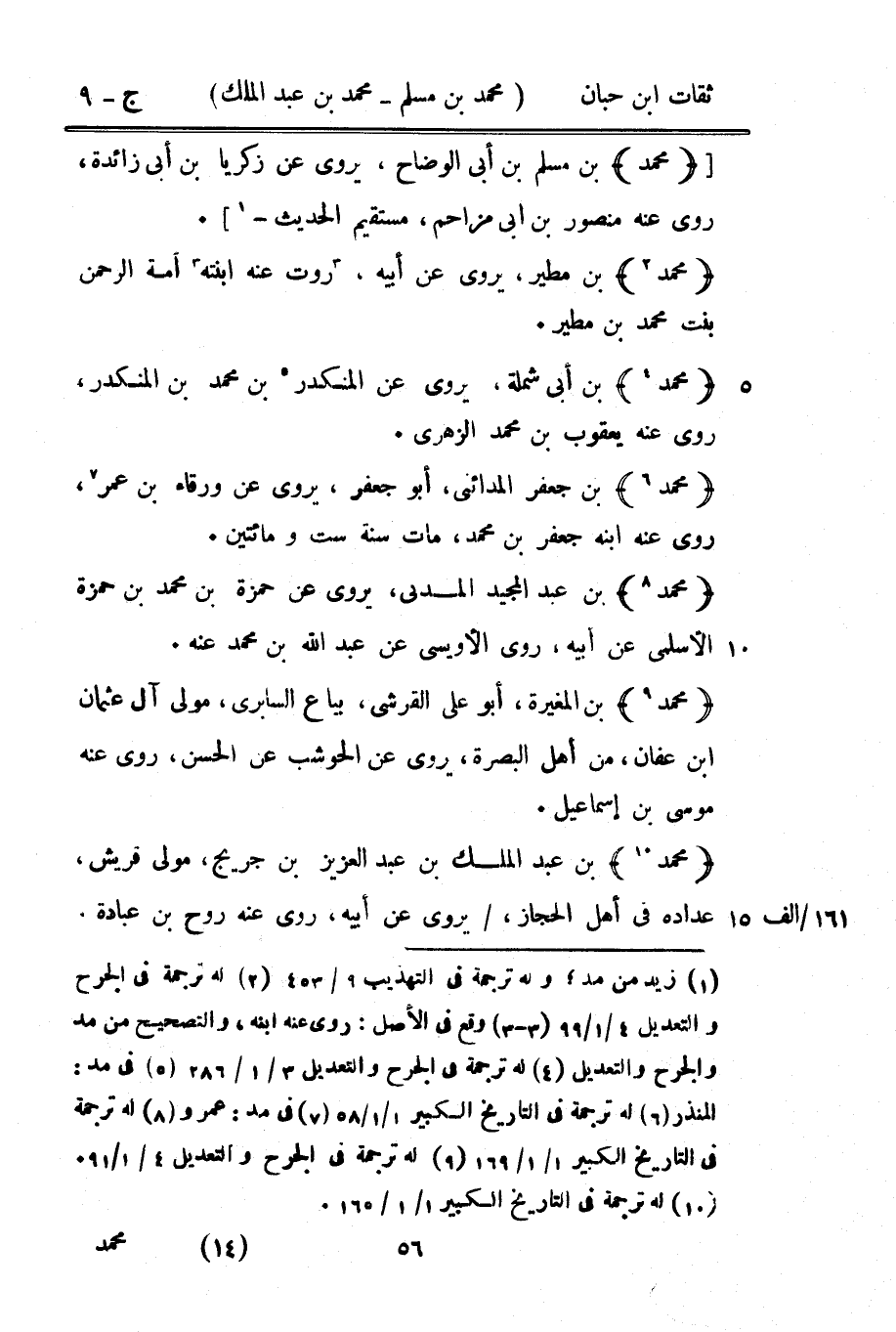15159 - مُحَمَّد بن جَعْفَر الْمَدَائِنِي أَبُو جَعْفَر يروي عَن وَرْقَاء بن عمر روى عَنهُ ابْنه جَعْفَر بن مُحَمَّد مَاتَ سنة سِتّ وَمِائَتَيْنِ