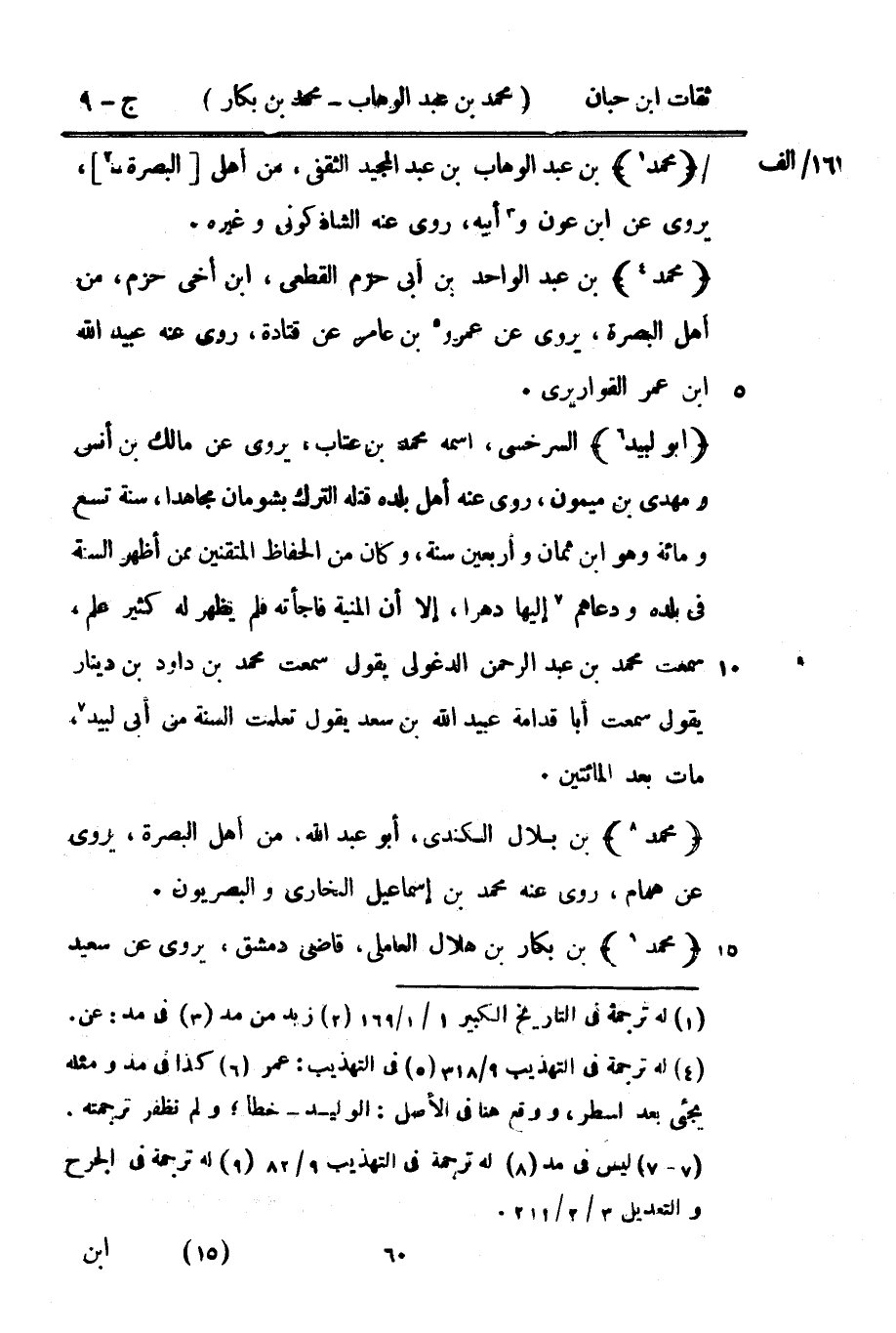 15178 - مُحَمَّد بن عبد الْوَهَّاب بن عبد الْمجِيد الثَّقَفِيّ من أهل الْبَصْرَة يرْوى عَن بن عون وَأَبِيهِ روى عَنهُ الشَّاذكُونِي وَغَيره