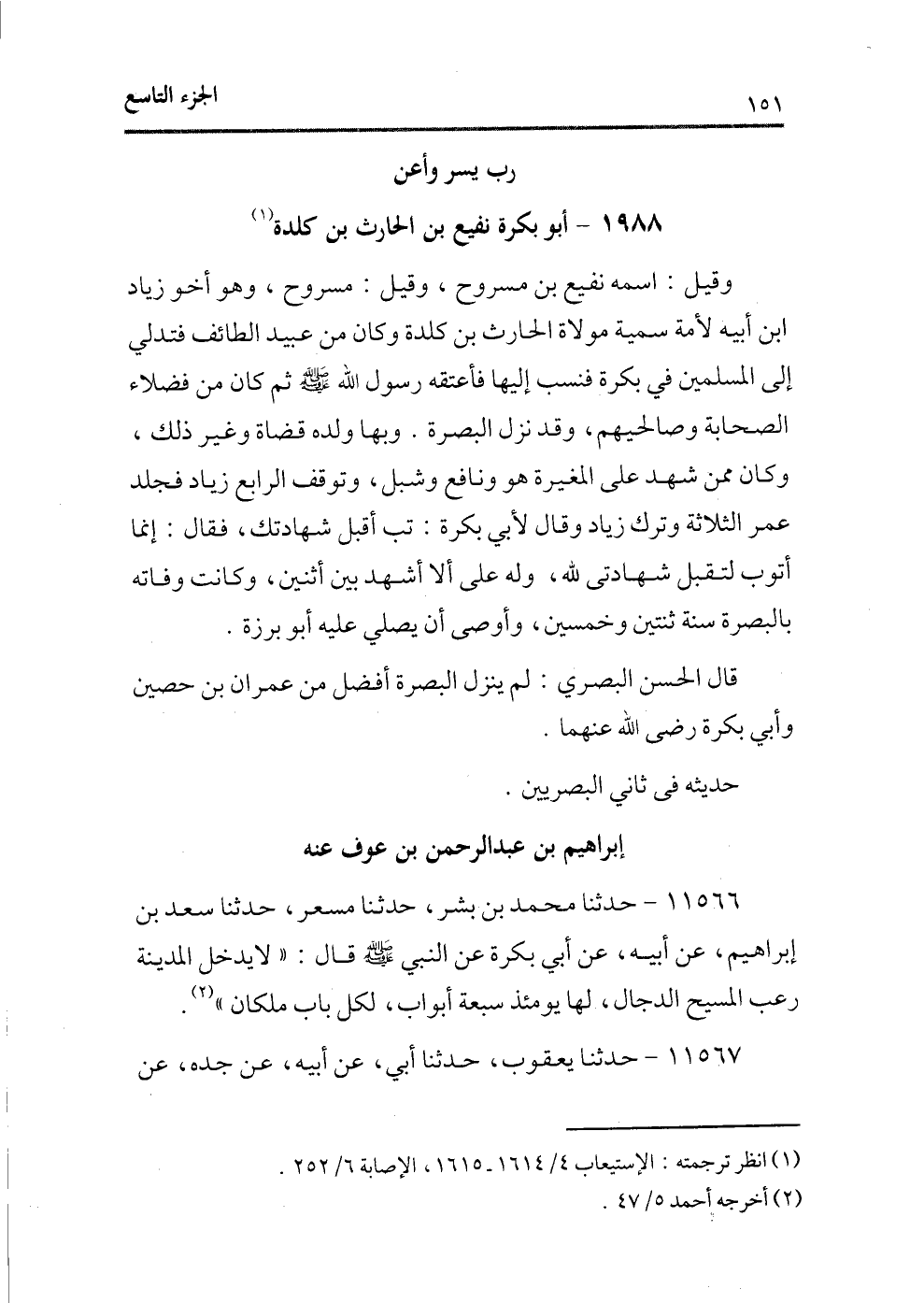 1988- أبو بكرة نفيع بن الحارث بن كلدة (¬1)