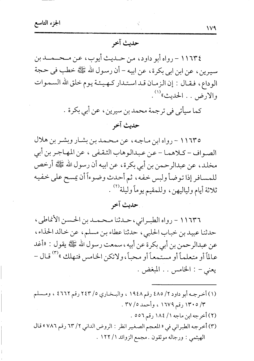 11634 - رواه أبو داود، من حديث أيوب، عن محمد بن سيرين، عن ابن أبى بكرة، عن أبيه ـ أن رسول الله - صلى الله عليه وسلم - خطب فى حجة الوداع، فقال: «إن الزمان قد استدار كهيئة يوم خلق الله السموات والأرض.. الحديث» (¬1) .