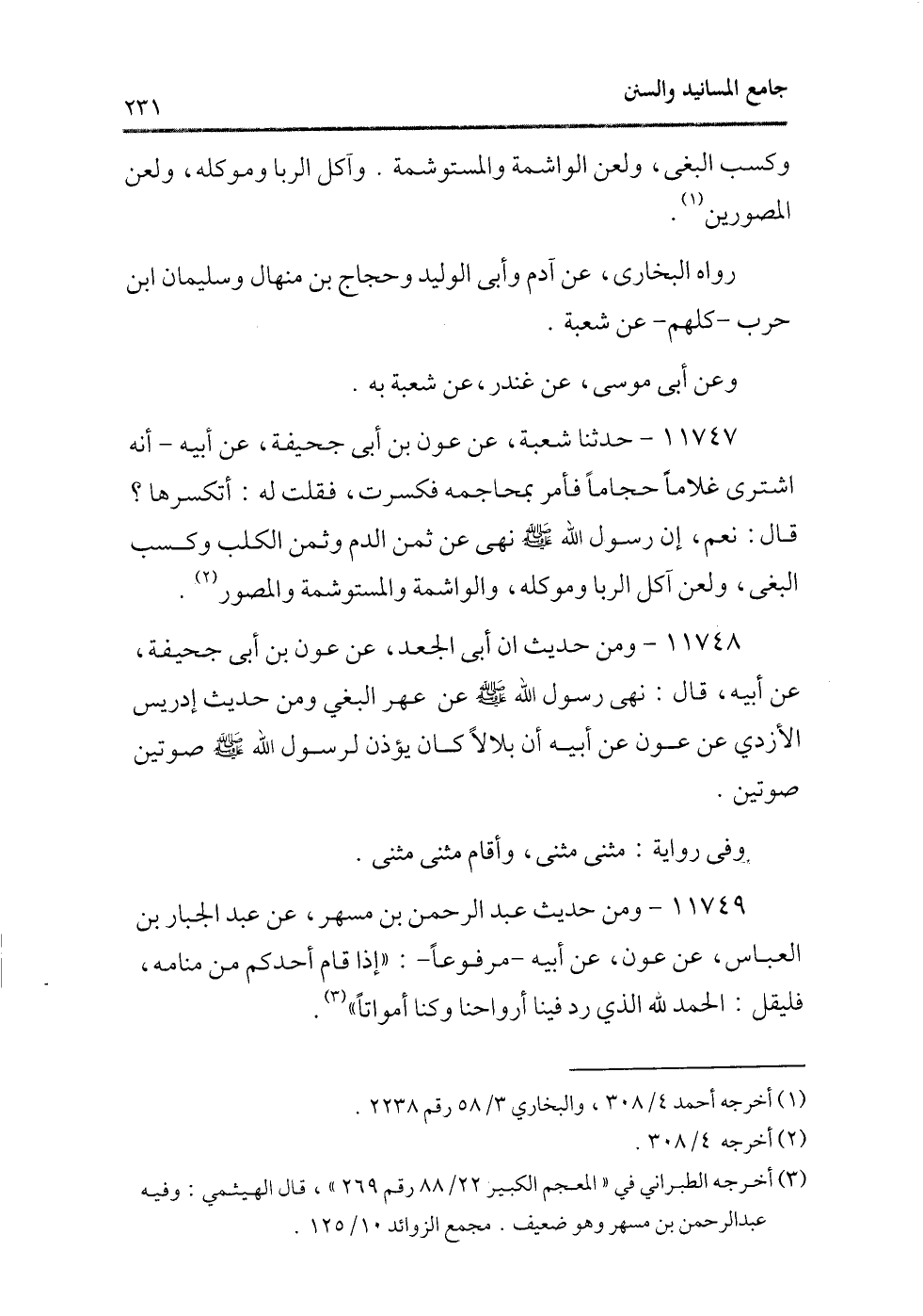11748 - ومن حديث أن أبى الجعد، عن عون بن أبى جحيفة، عن أبيه، قال: نهى رسول الله - صلى الله عليه وسلم - عن عهر البغى ومن حديث إدريس الأزدى عن عون عن أبيه أن بلالاً كان يؤذن لرسول الله - صلى الله عليه وسلم - صوتين صوتين.