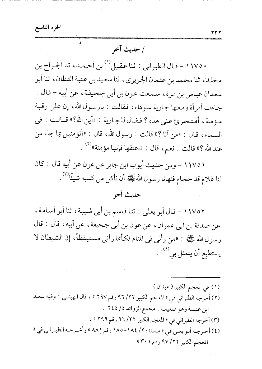 (¬2) أخرجه الطبرانى فى «المعجم الكبي 22/96 رقم297» ، قال الهيثمى: وفيه سعيد ابن عنبسة وهو ضعيف. مجمع الزوائد: 4/244.