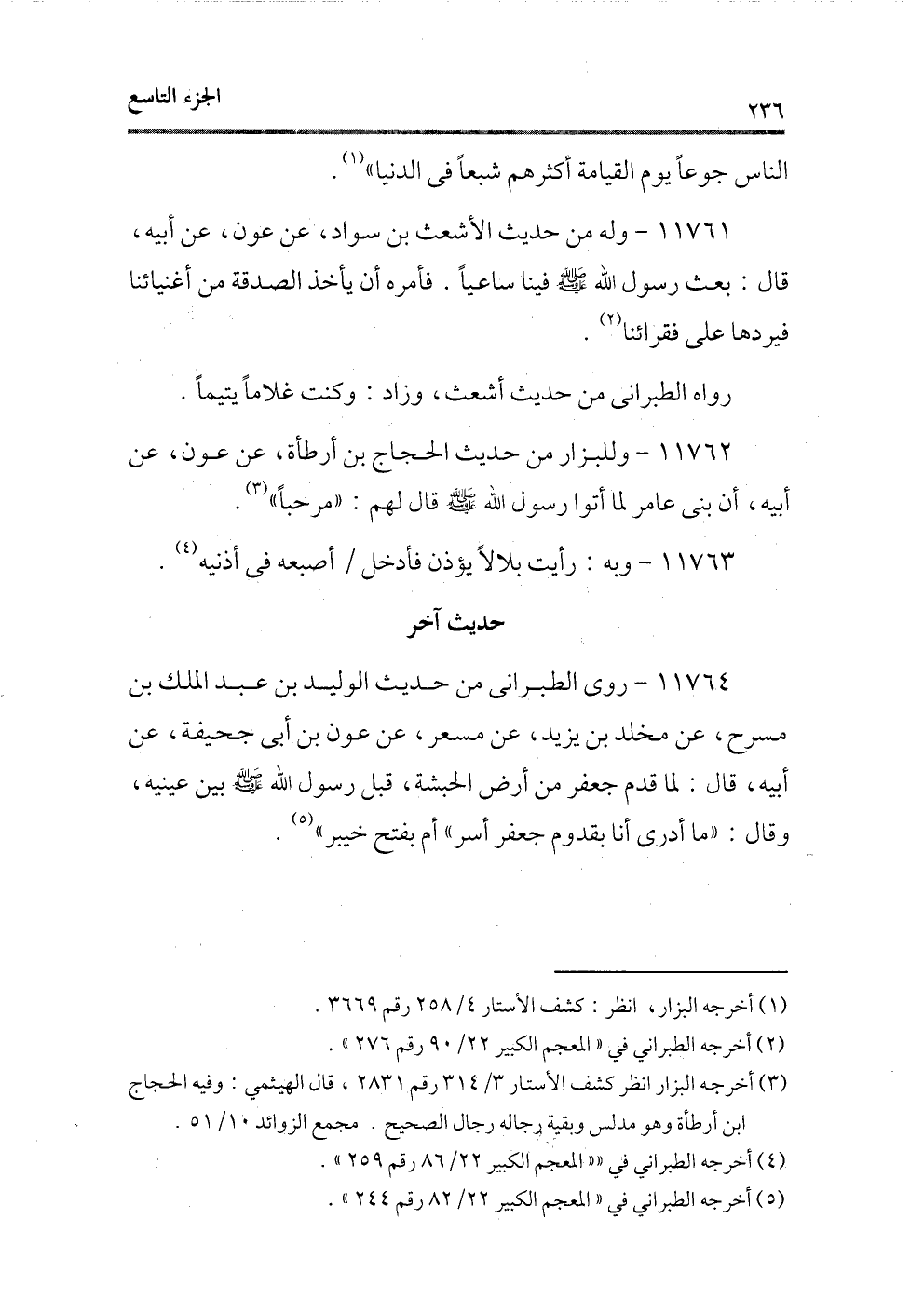 11761 - وله من حديث الأشعث بن سواد، عن عون، عن أبيه، قال: بعث رسول الله - صلى الله عليه وسلم - فينا ساعيًا. فأمره أن يأخذ الصدقة من أغنيائنا فيردها على فقرائنا (¬1) .