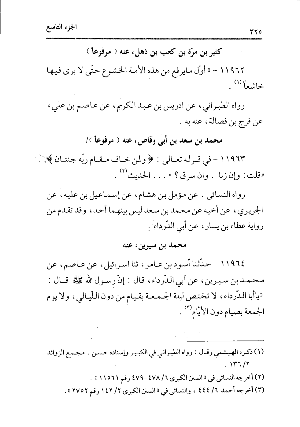 رواه النسائى، عن مؤمل بن هشام، عن إسماعيل بن عليه، عن الجريرى، عن أخيه عن محمد بن سعد ليس بينهما أحد، وقد تقدم من رواية عطاء بن يسار، عن أبى الدرداء.